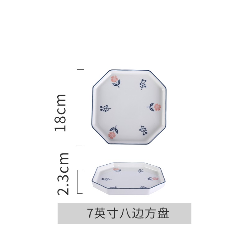商品名称:顺祥 陶瓷碗碟餐具英伦小调小清新米饭碗轻奢英式田园风釉下彩面碗大碗陶瓷饭碗汤碗 7英寸八边方盘单个 单位:个