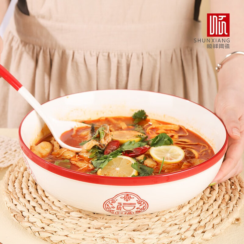 商品名称:顺祥陶瓷酸菜鱼大盆碗喜庆家用大号大碗大汤碗装汤水煮鱼毛血旺小龙虾 12英寸酸菜鱼汤盆(五福临门) 单位:个