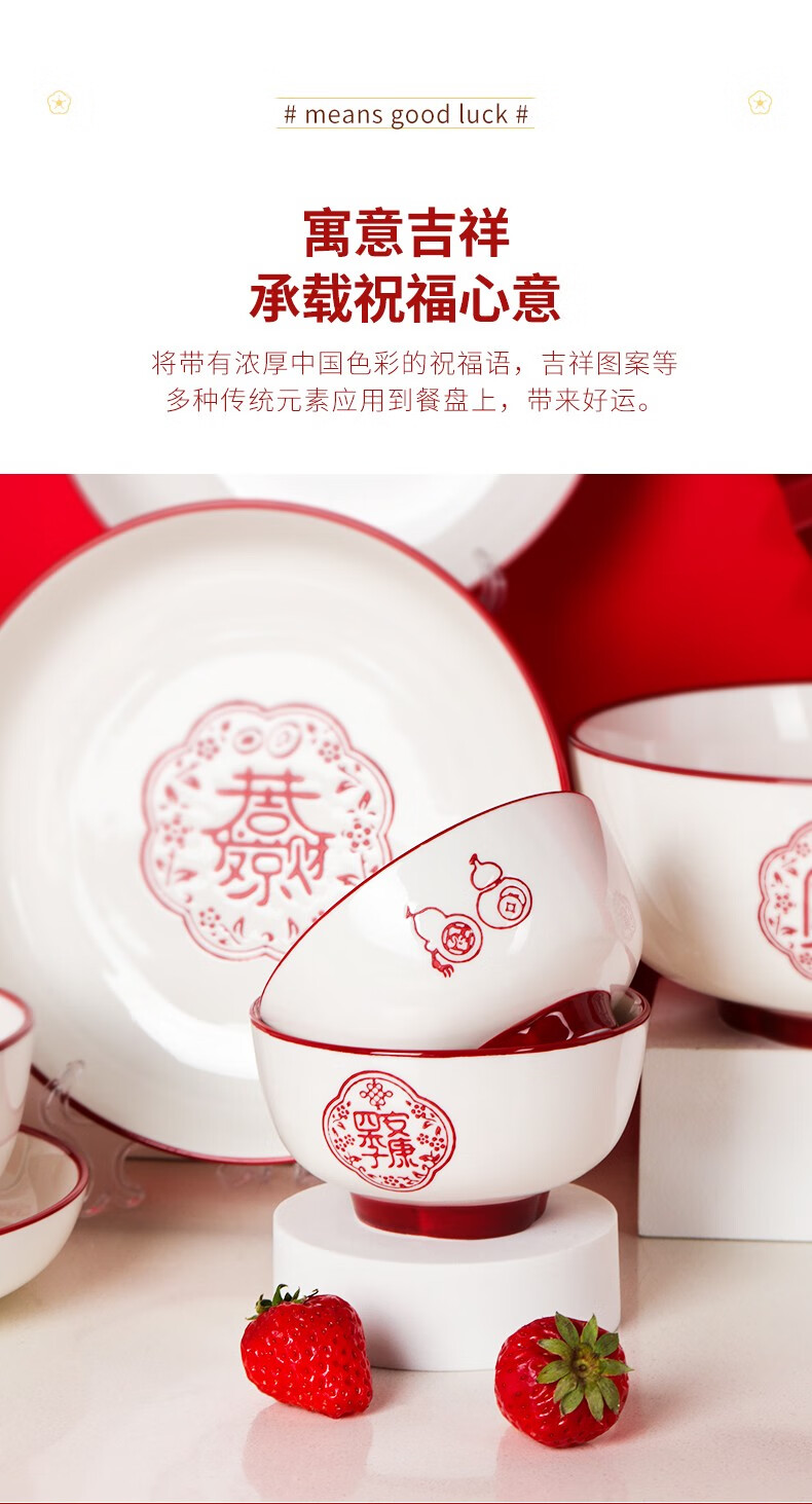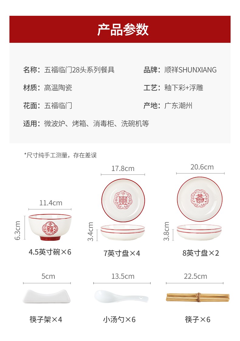 商品名称:顺祥五福临门餐具套装28头 喜庆套装礼盒装 单位:盒