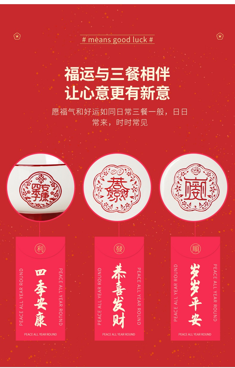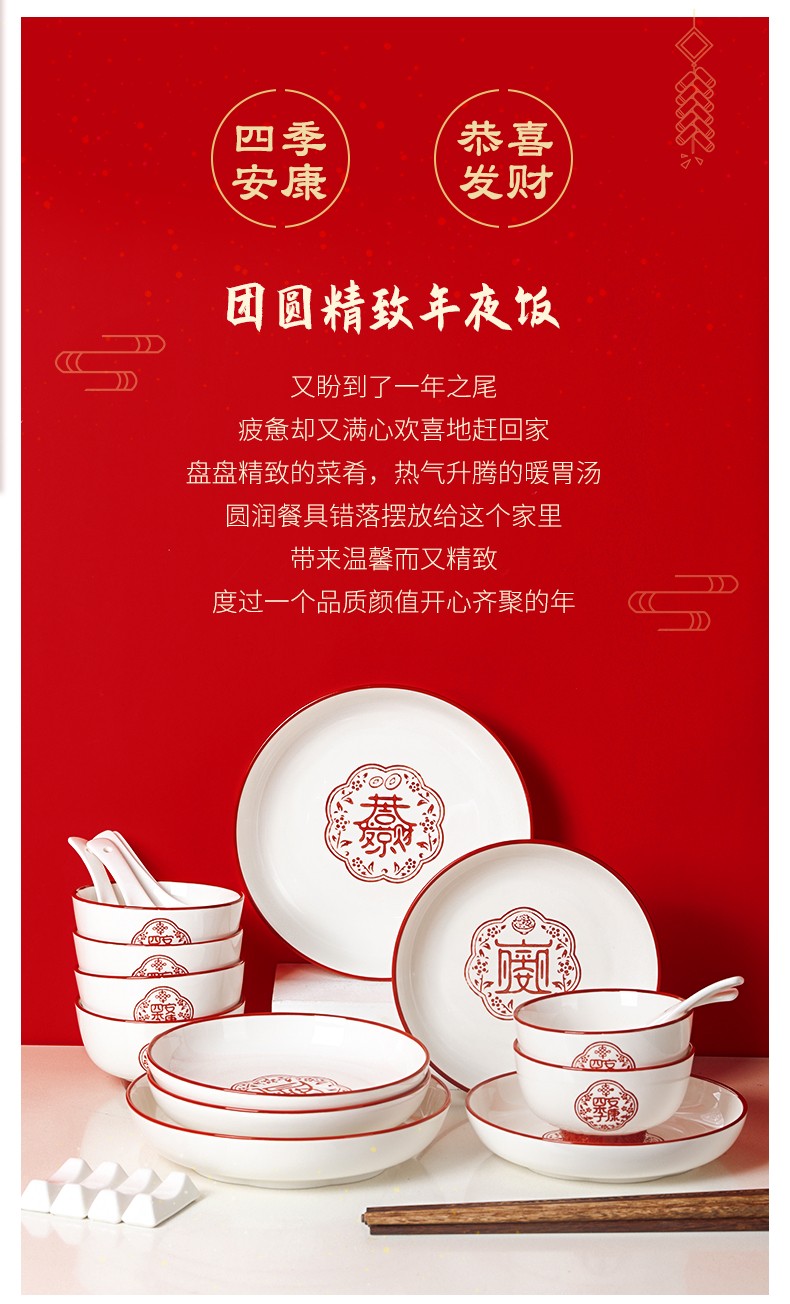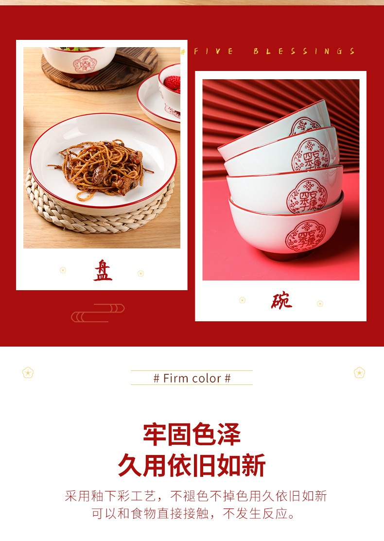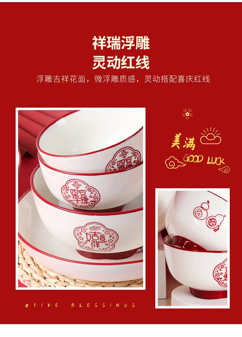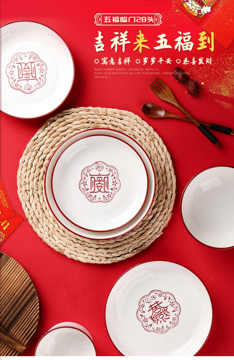 顺祥五福临门餐具套装28头 喜庆套装礼盒装 单位:盒