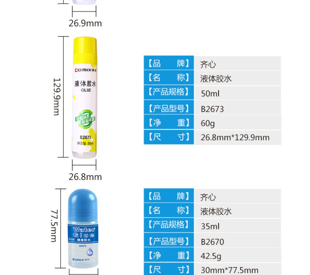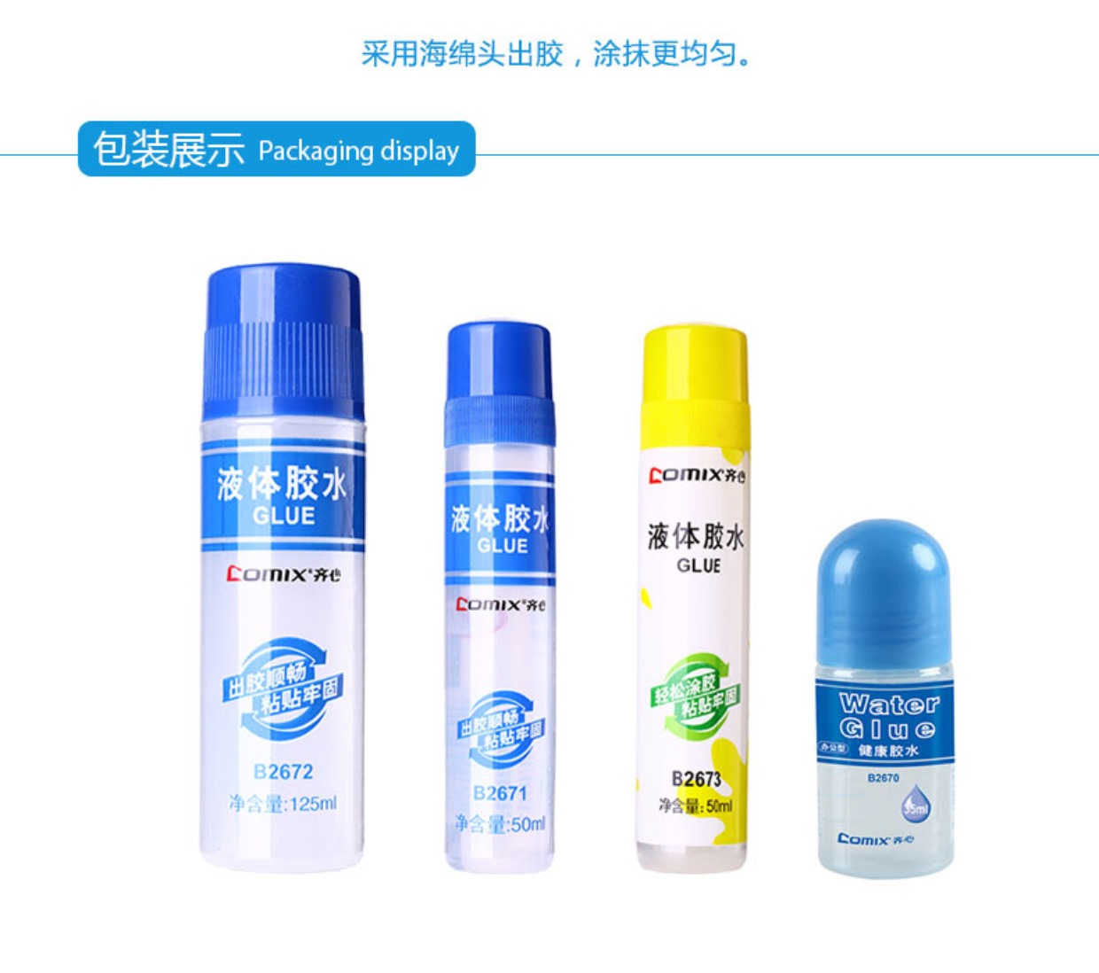 商品名称:齐心 B2673液体胶水50ml 中号 海绵头办公胶水票据胶水学生手工