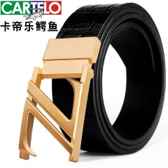 卡帝乐鳄鱼 男士真皮皮带平滑扣腰带男头层牛皮实心黄铜扣头