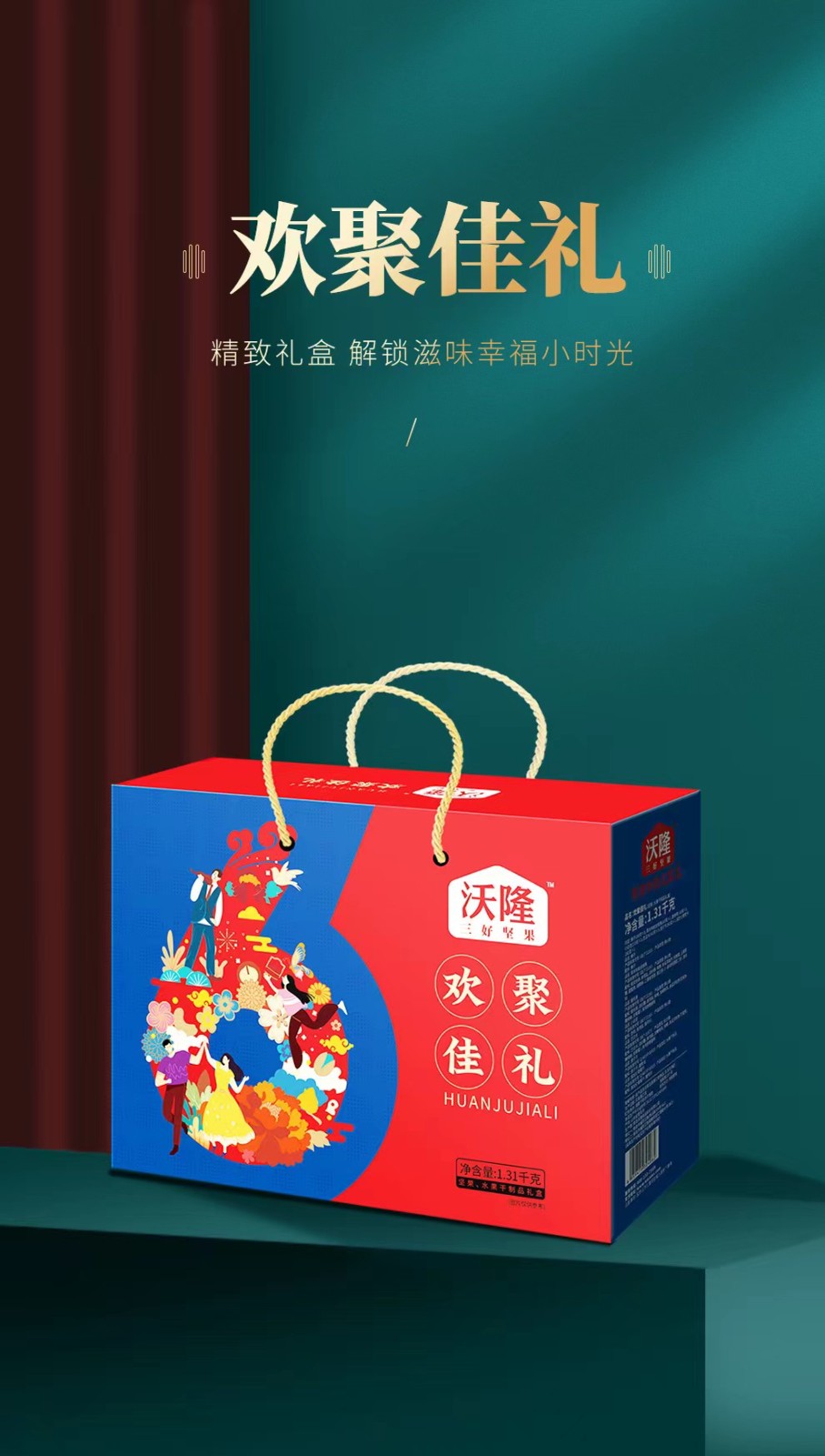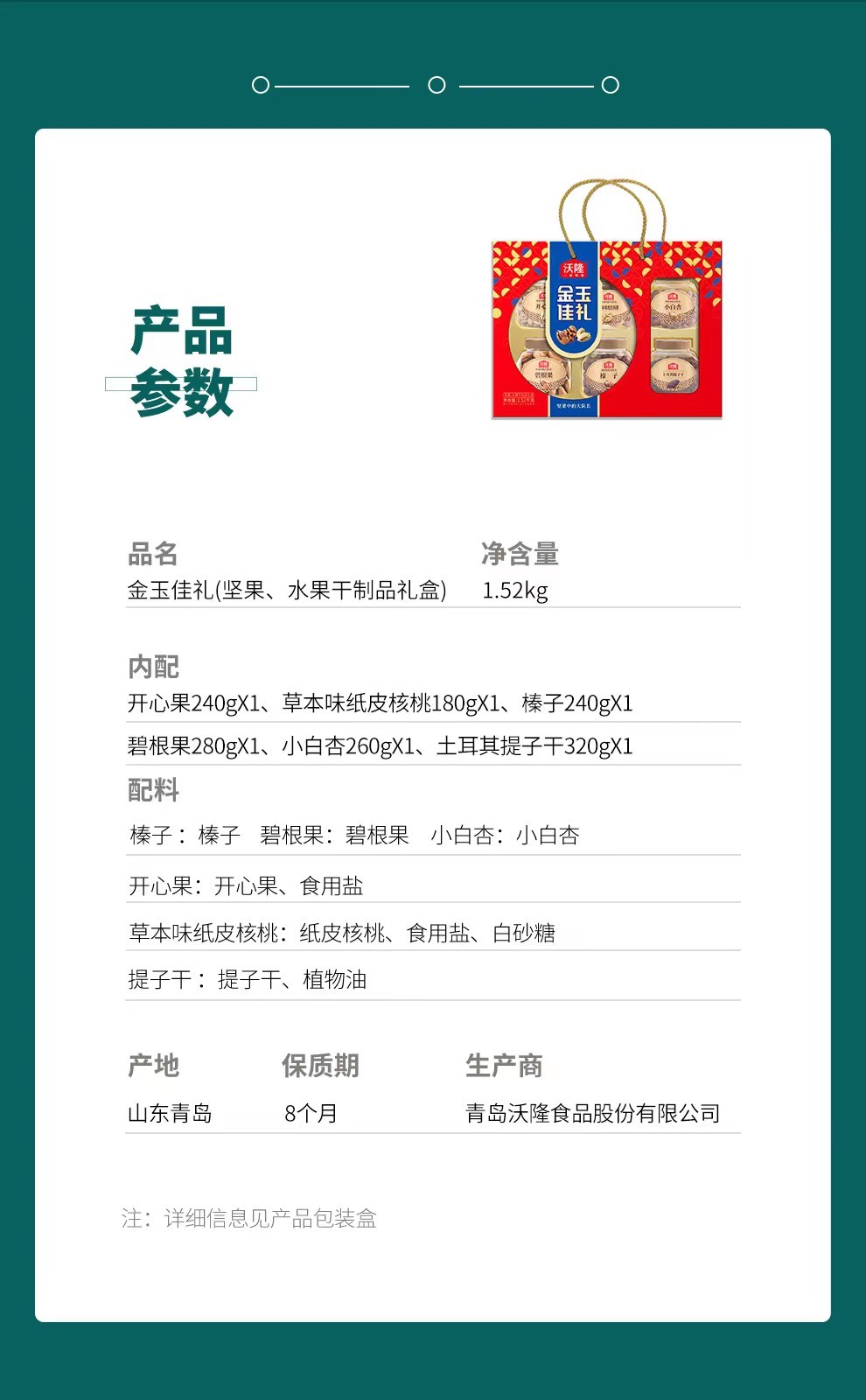 商品名称:沃隆 坚果礼盒干果礼盒休闲零食大礼包 沃隆1.52kg金玉佳礼