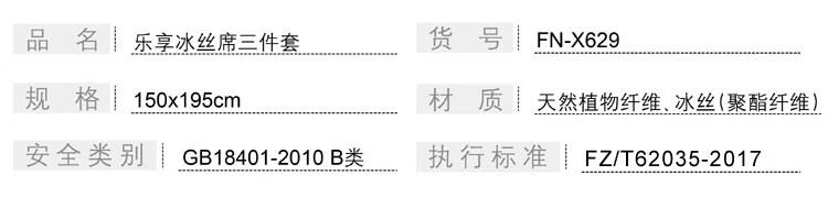 商品名称:芳恩家纺 FN-X629 乐享冰丝席三件套 空调凉席夏季冰丝软席 兰色 150*195cm 单位:套