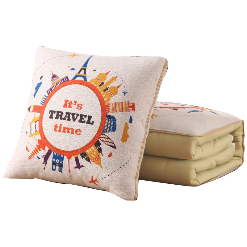 芳恩家纺 FN-R742 数码印花亚麻抱枕被 多功能抱枕被子两用汽车沙发靠垫被办公促销礼品 环游世界 单位:个