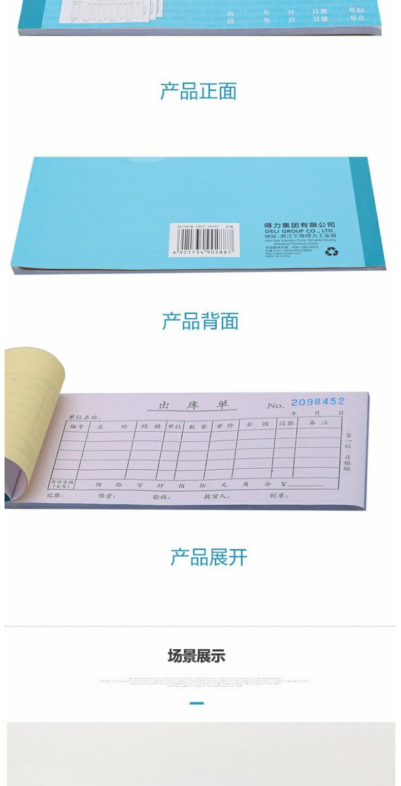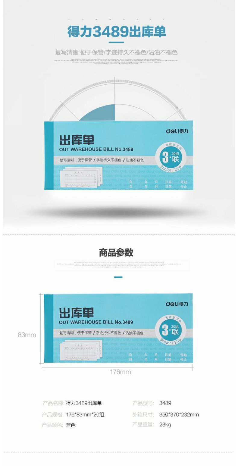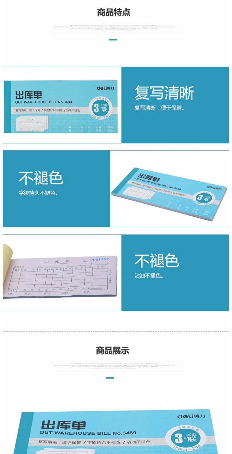 商品名称:得力 3489出库单三联多栏式进出仓单据仓库出入仓登记本