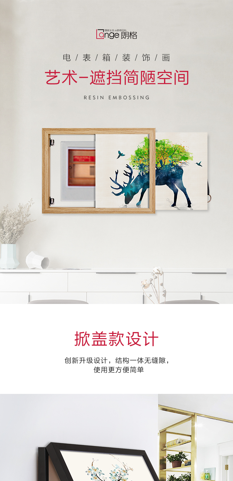 商品名称:朗格 电表箱装饰画免打孔现代简约遮挡配电箱北欧客厅挂画电源箱开关盒