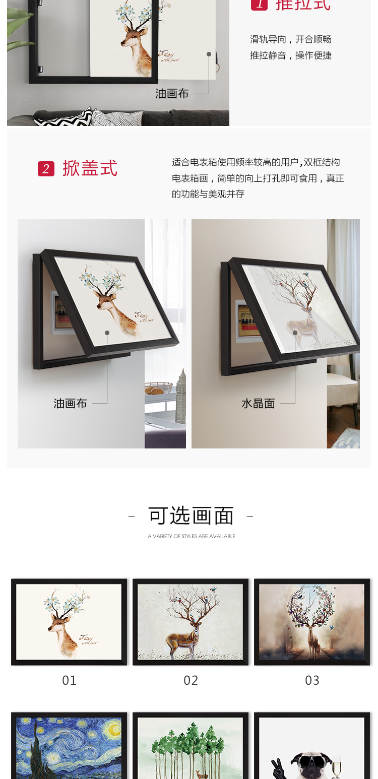 朗格 电表箱装饰画免打孔现代简约遮挡配电箱北欧客厅挂画电源箱开关盒