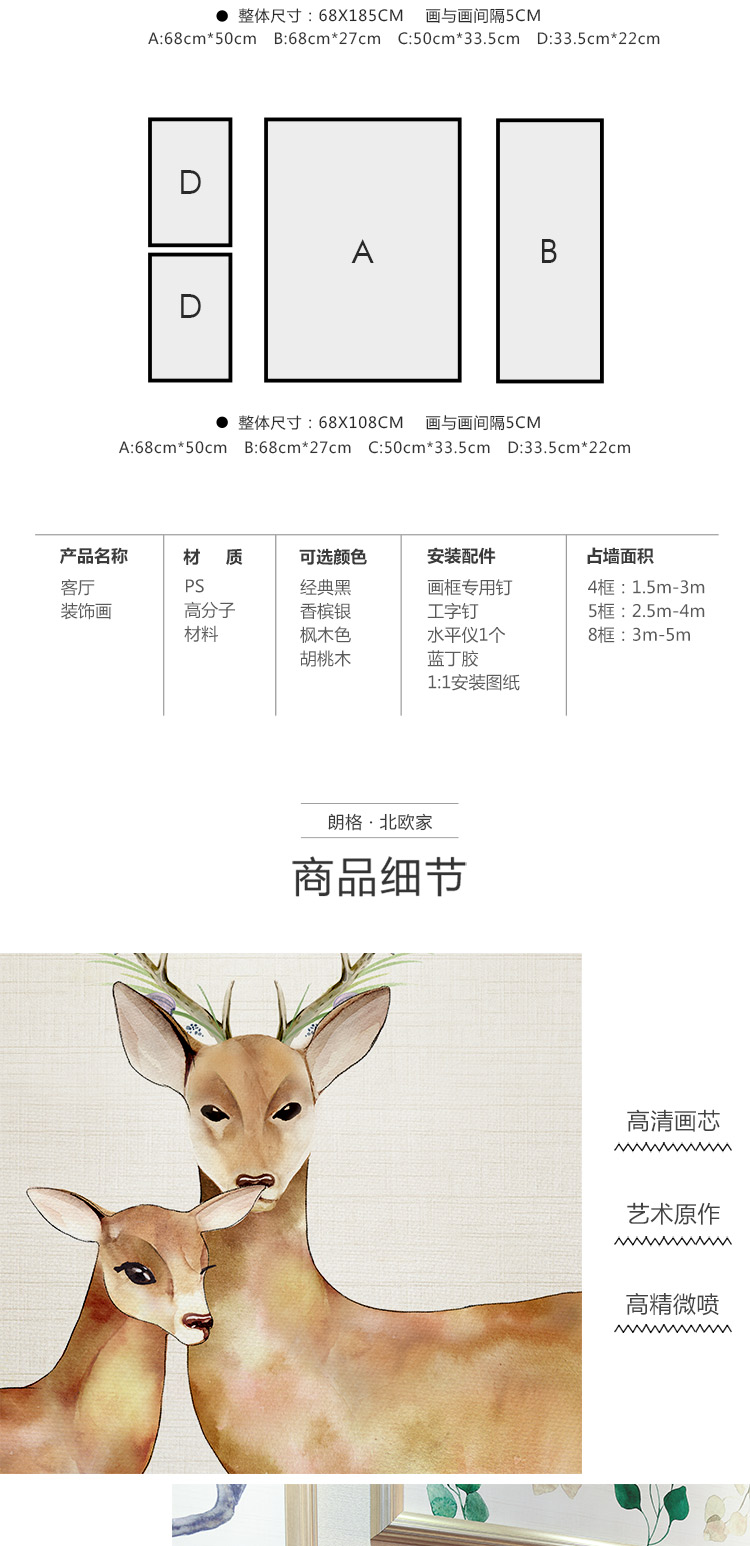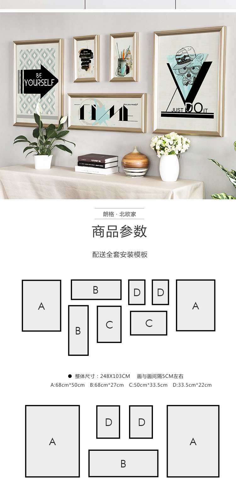 商品名称:朗格 北欧风格客厅装饰画沙发背景墙挂画组合美式墙画现代简约餐厅壁画