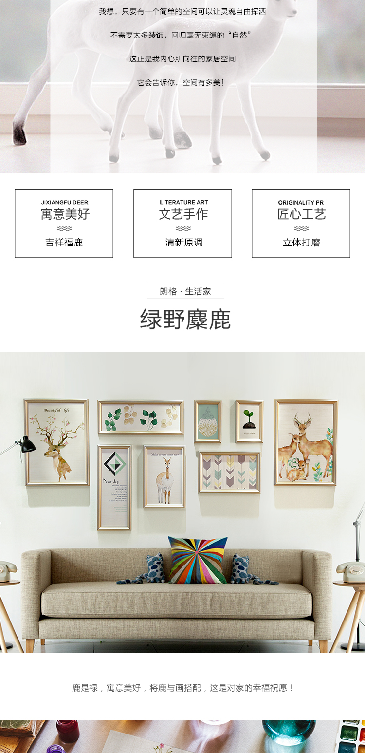 朗格 北欧风格客厅装饰画沙发背景墙挂画组合美式墙画现代简约餐厅壁画