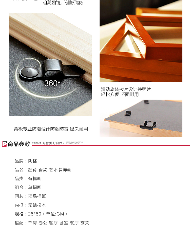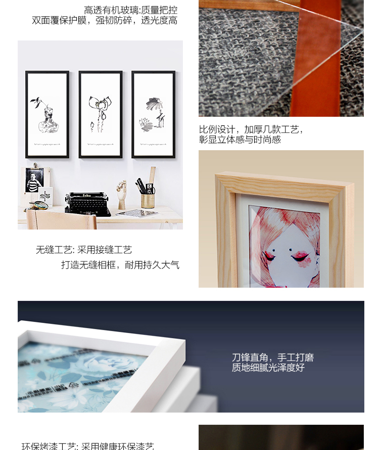 朗格 现代简约装饰画实木大相框挂墙证书拼图海报框广告画框