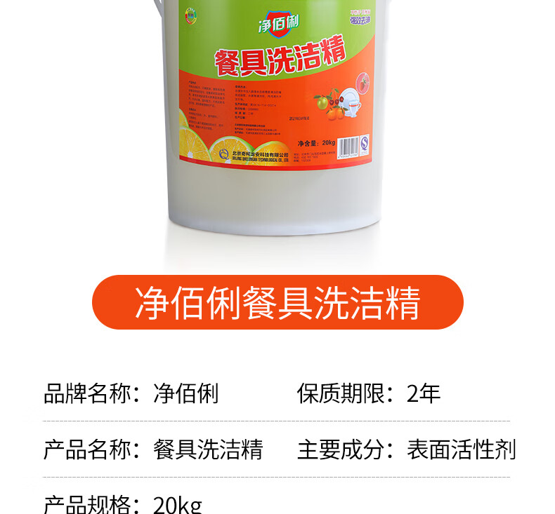 商品名称:净佰俐 (JINGBL) 洗洁精大桶20kg/桶 工业商用柠檬去油洗涤灵餐具果蔬清洗剂洗碗洗涤剂(新老包装随机)