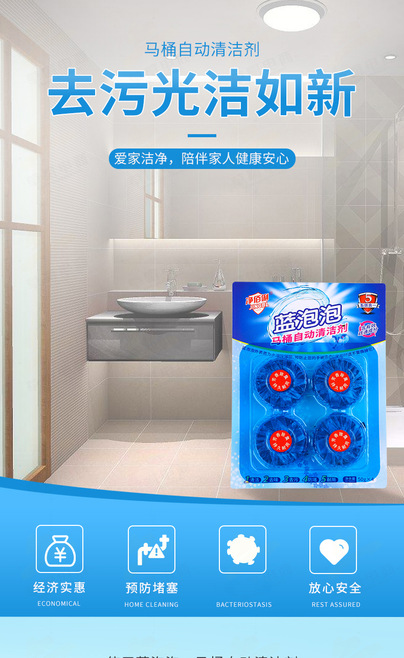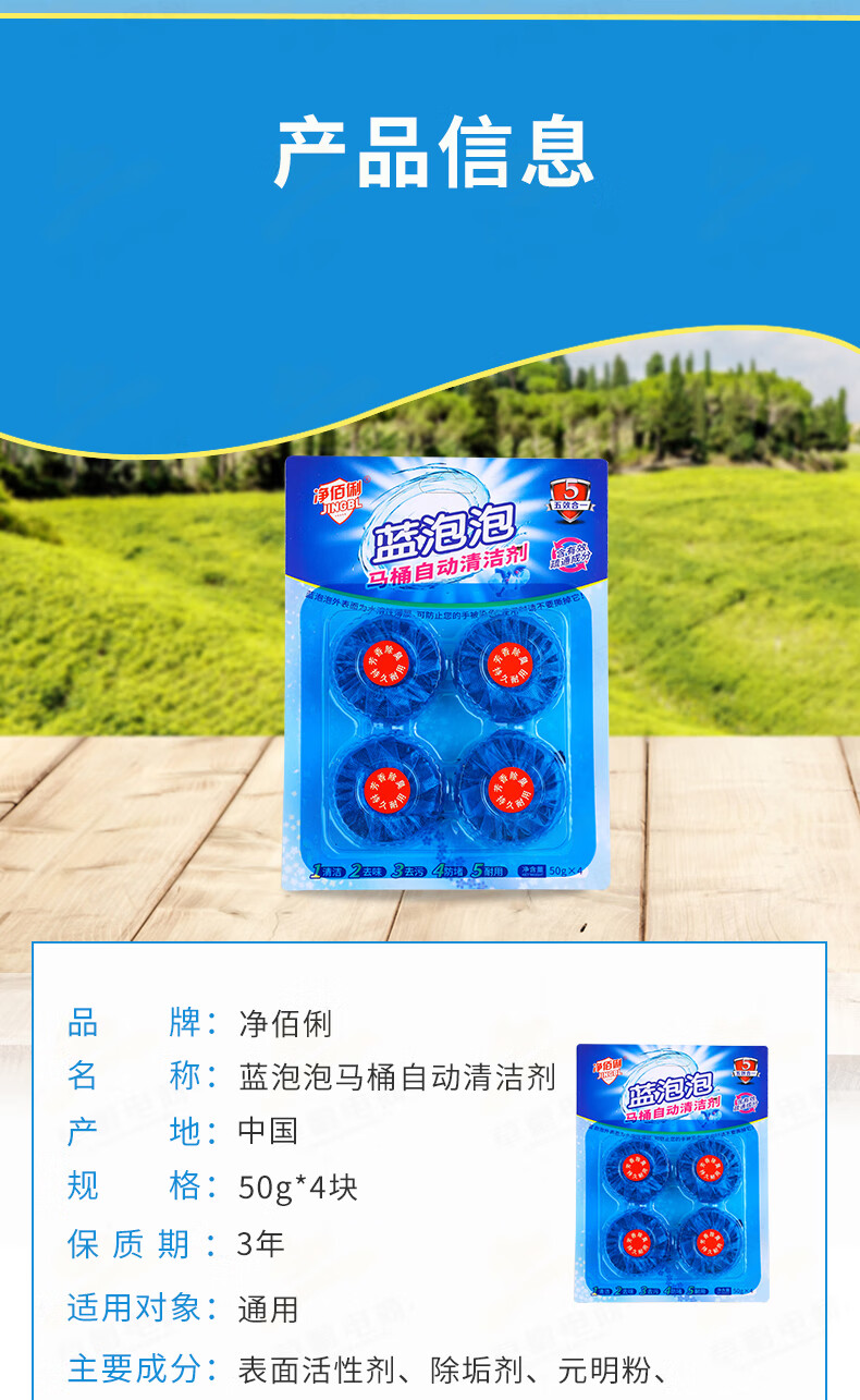 商品名称:净佰俐 蓝泡泡 50g*4块(松木香型)洁厕块 洁厕宝 马桶疏通 马桶清洁剂 单位:包 20包起订