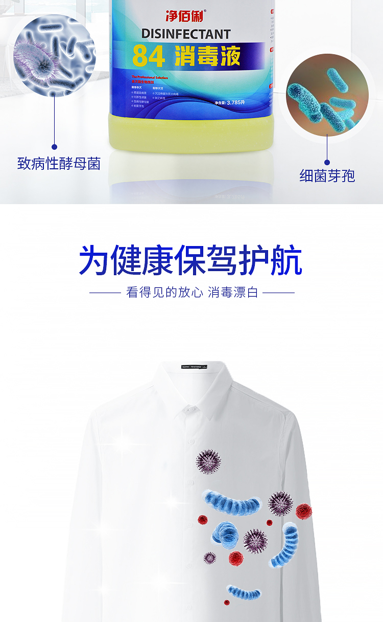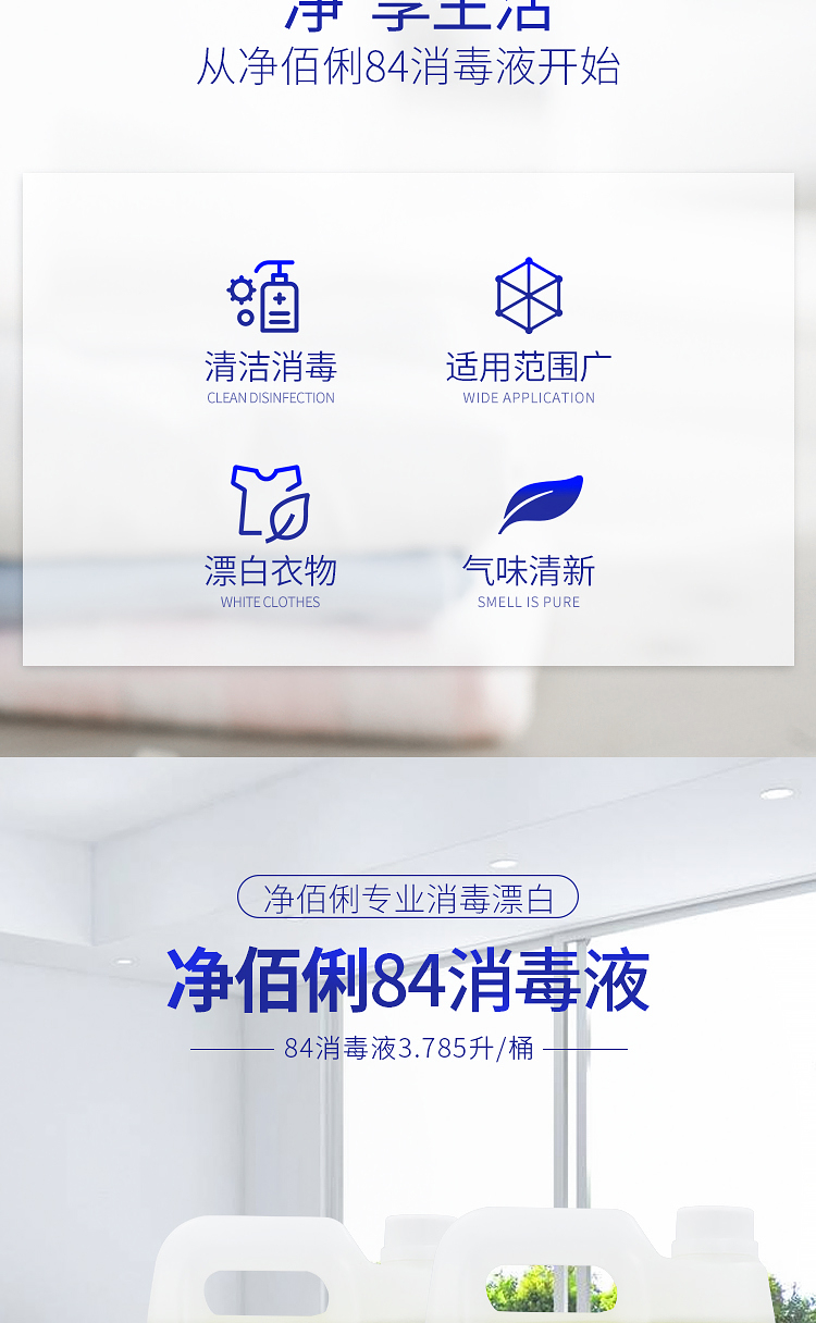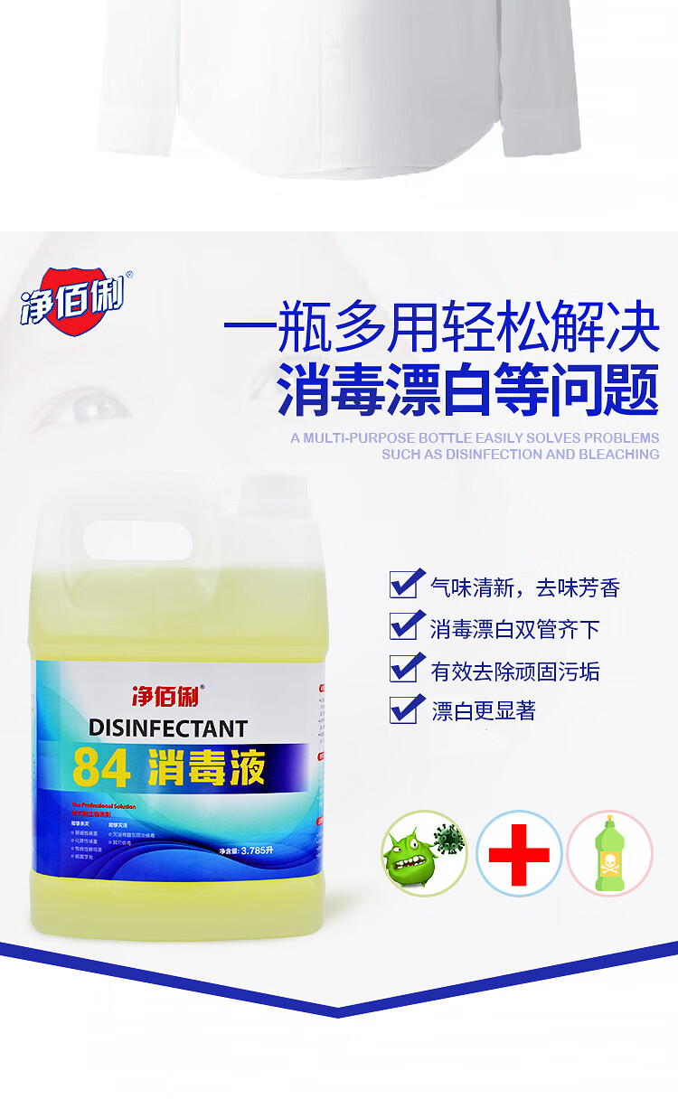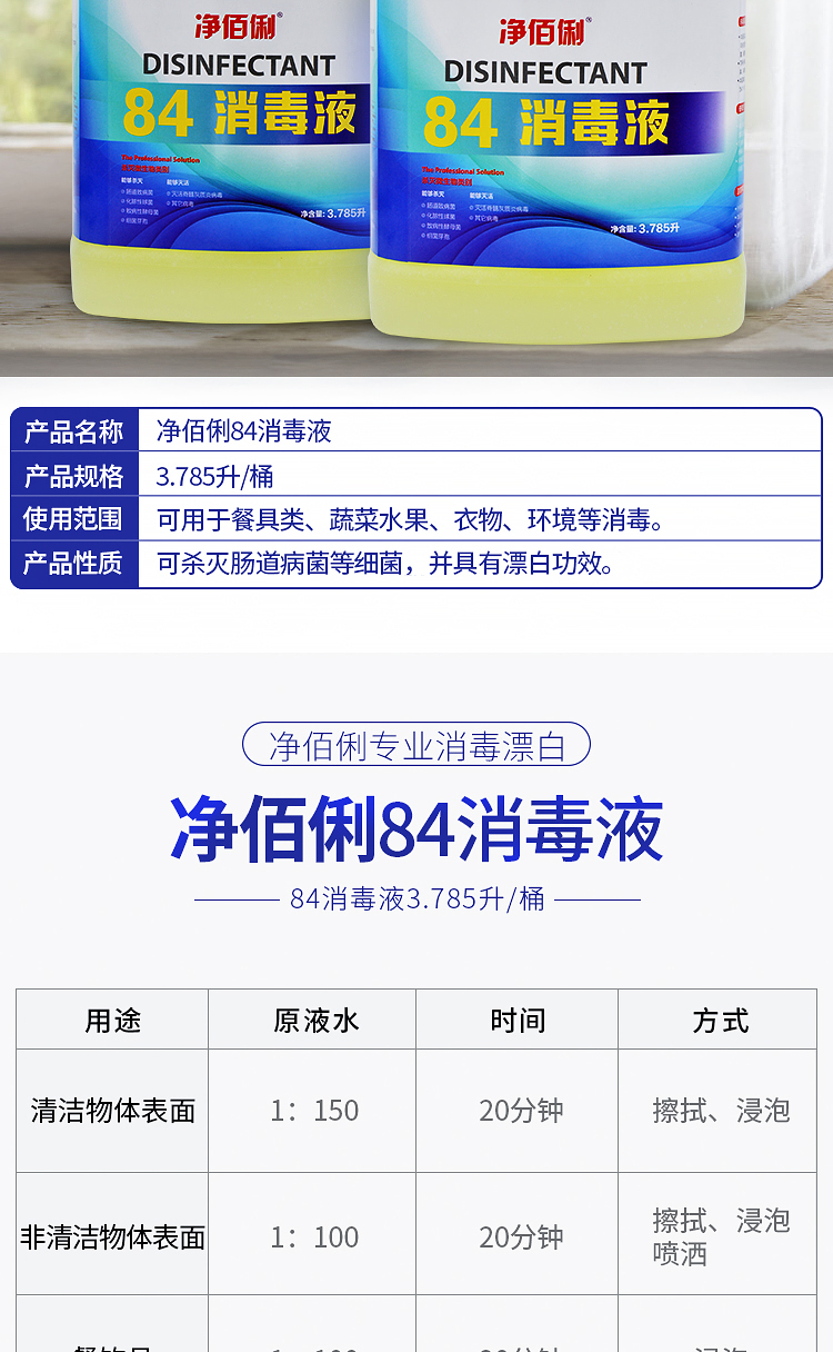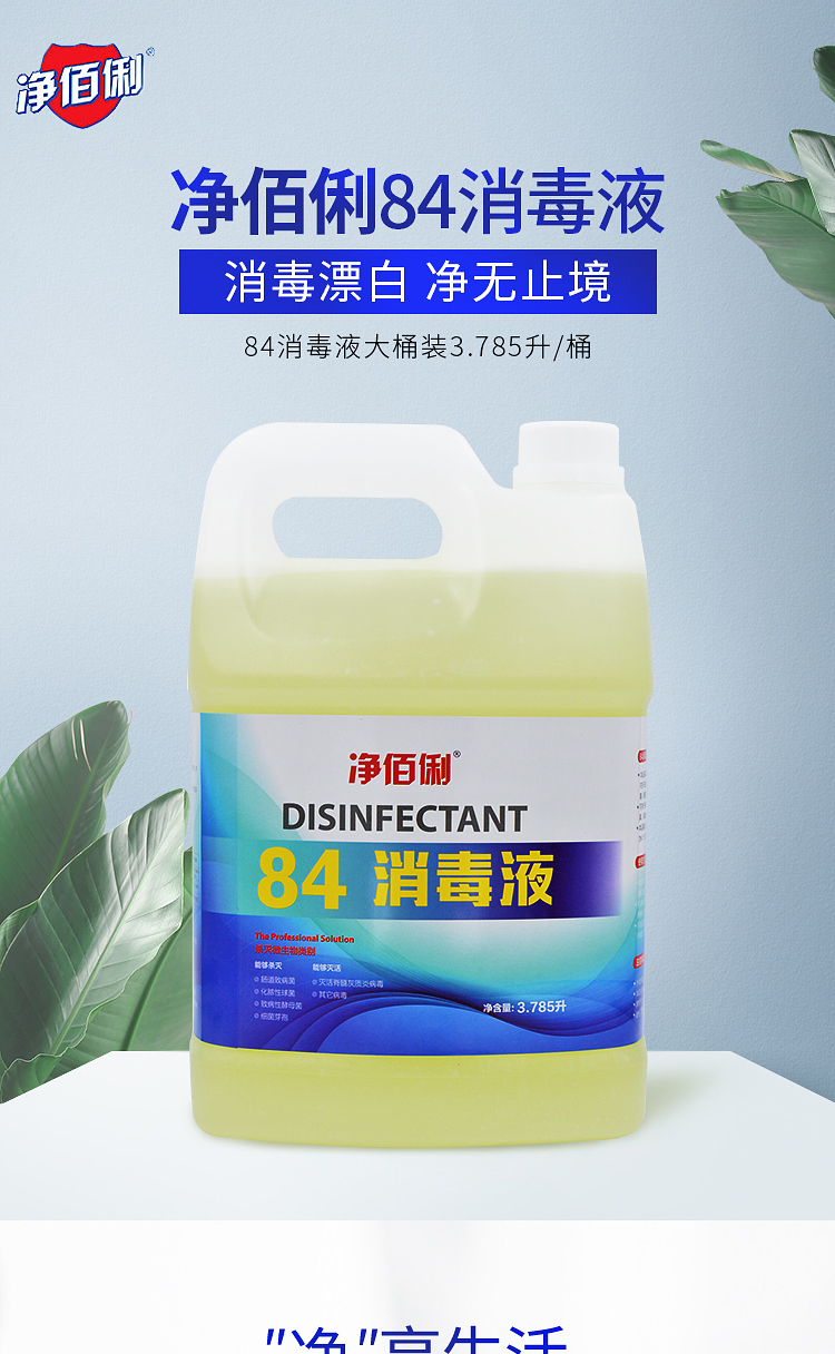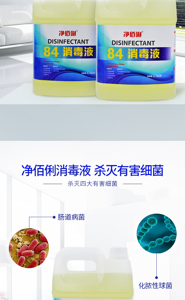 商品名称:净佰俐 (JINGBL) 3.785升*4桶/箱 84消毒液 衣物漂白水 除菌水 地板杀菌消毒工业(新老包装随机)