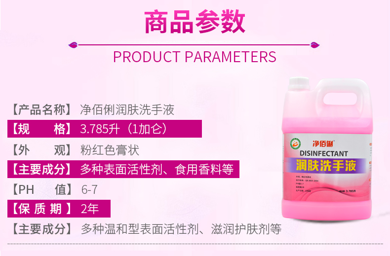 商品名称:净佰俐 润肤洗手液 3.785L 清洁去污 家庭酒店餐厅可用 洗手液大桶 洗手液补充装工业 单位:桶 4桶起订