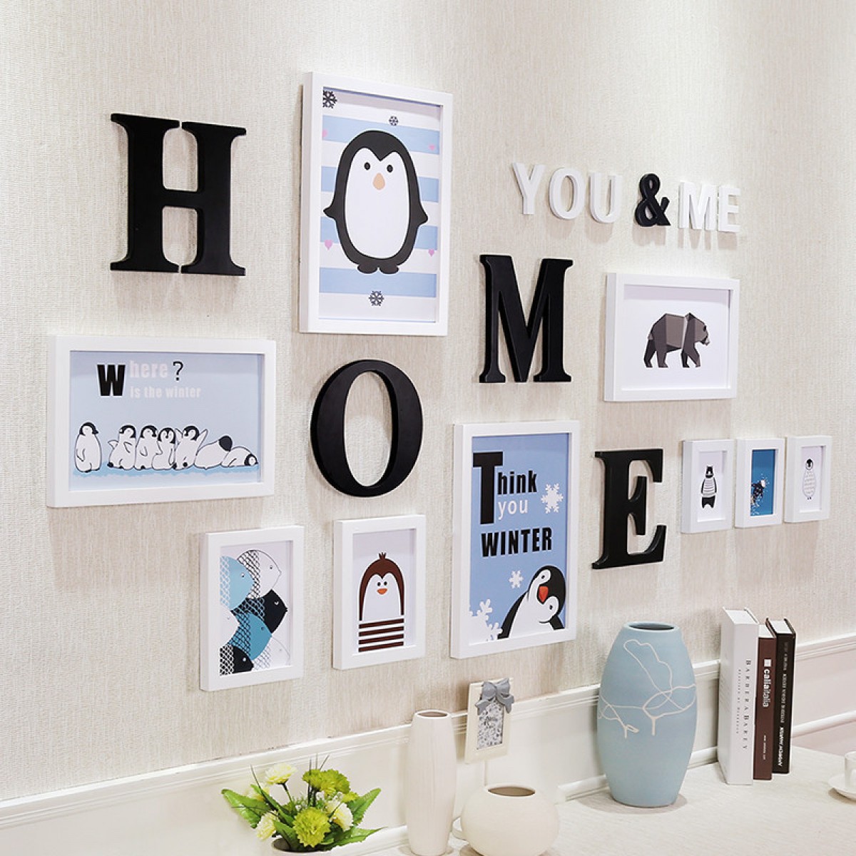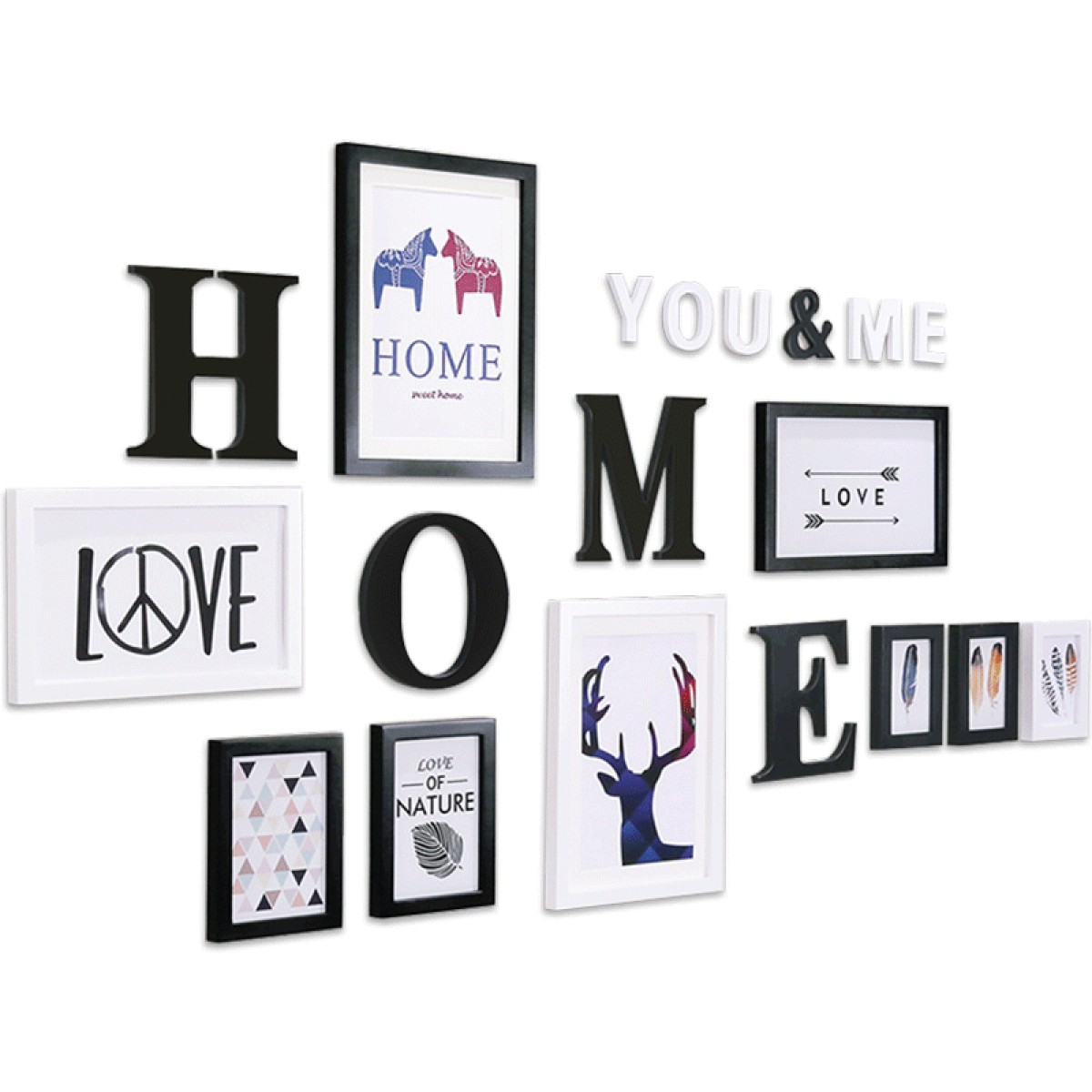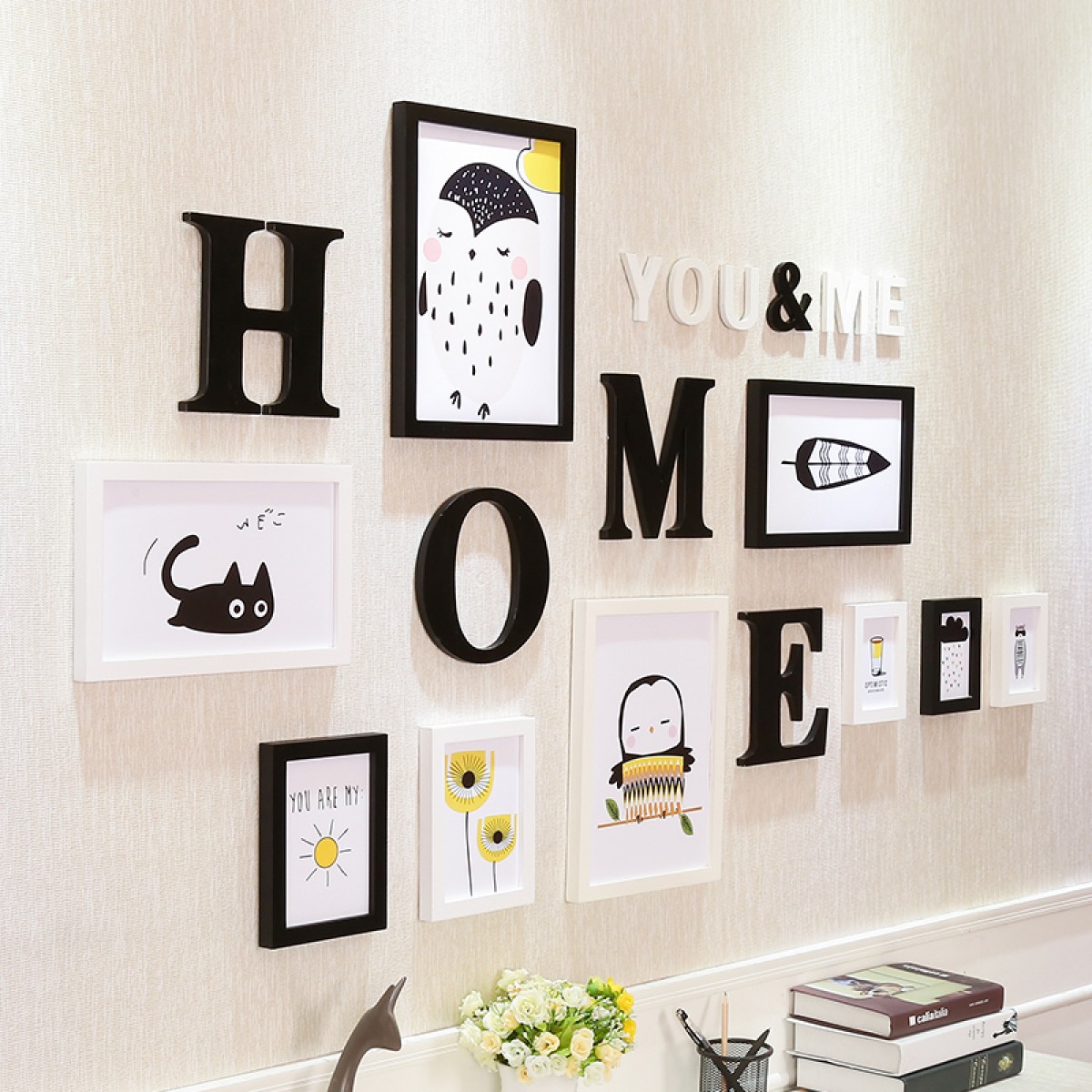 朗格 实木背景照片墙贴纸客厅复古怀旧相框组合挂墙卧室相片墙
