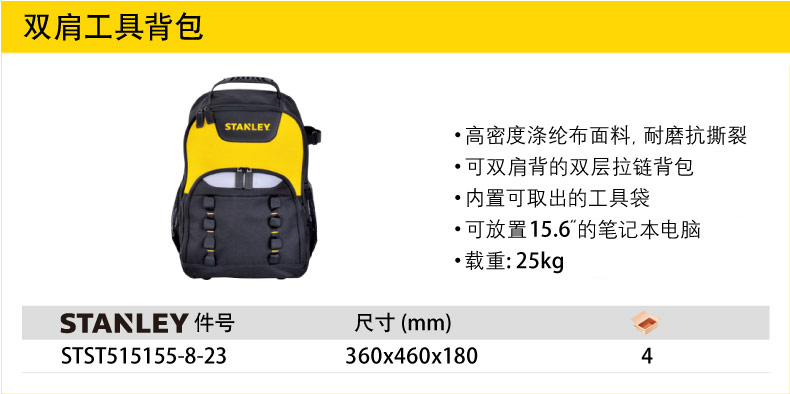商品名称:STANLEY/史丹利双肩工具背包 家用电脑箱包 STST515155-8-23