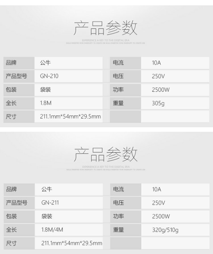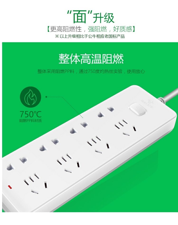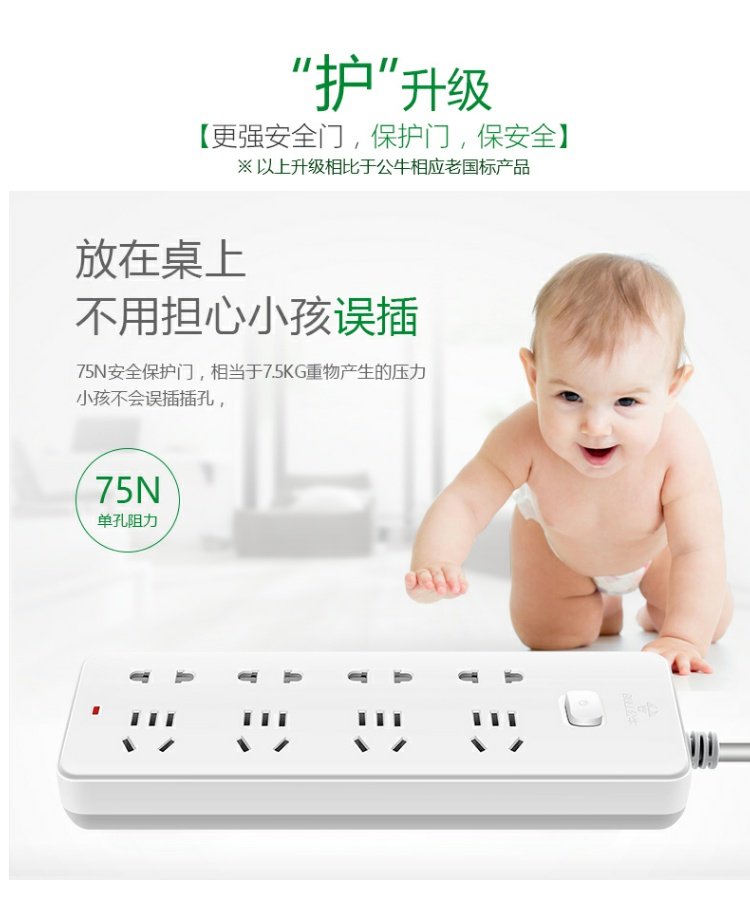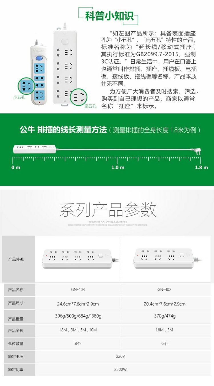 商品名称:公牛 插座插排插线板插板带线4/6/8/10插位家用多孔转换器3/5/10米 GN-403