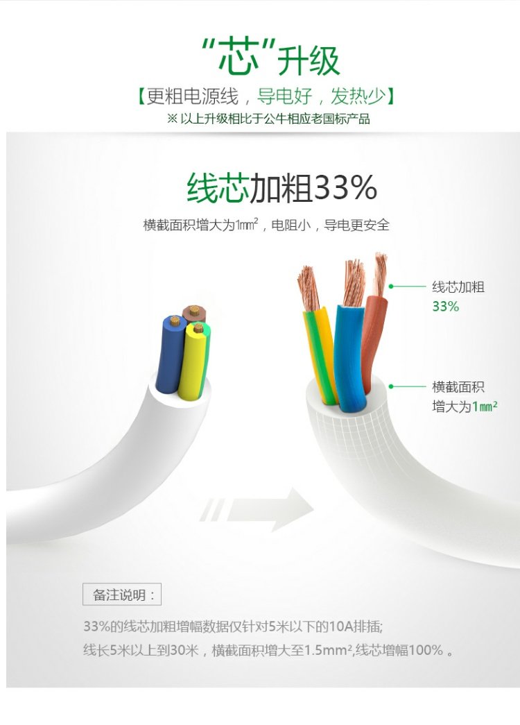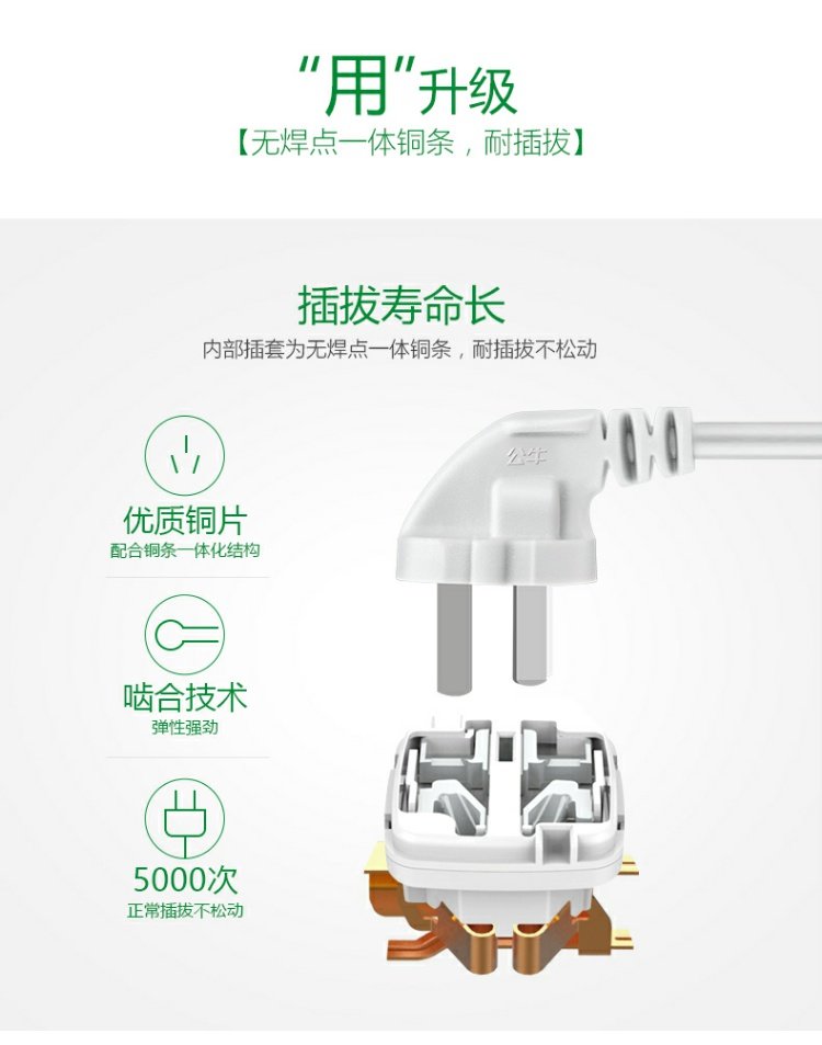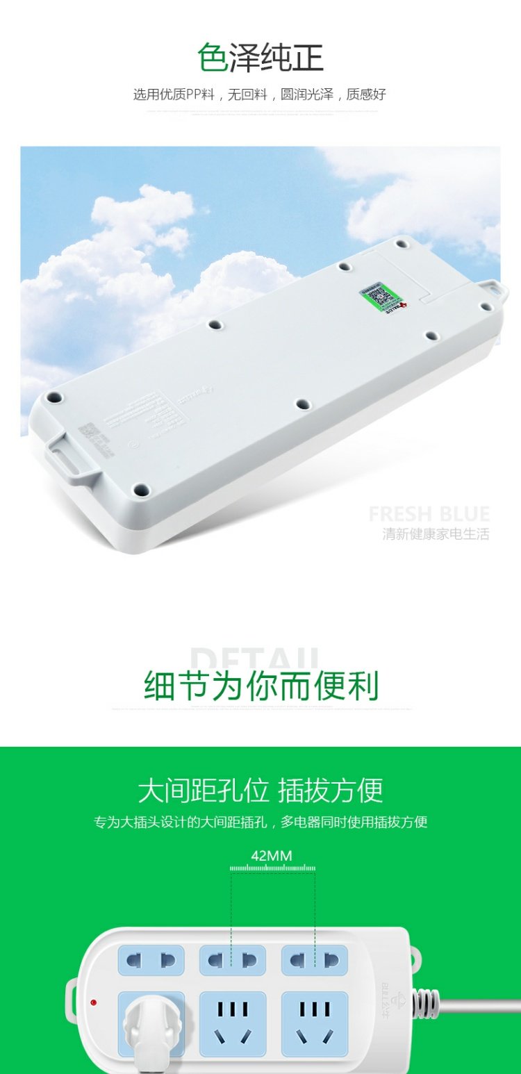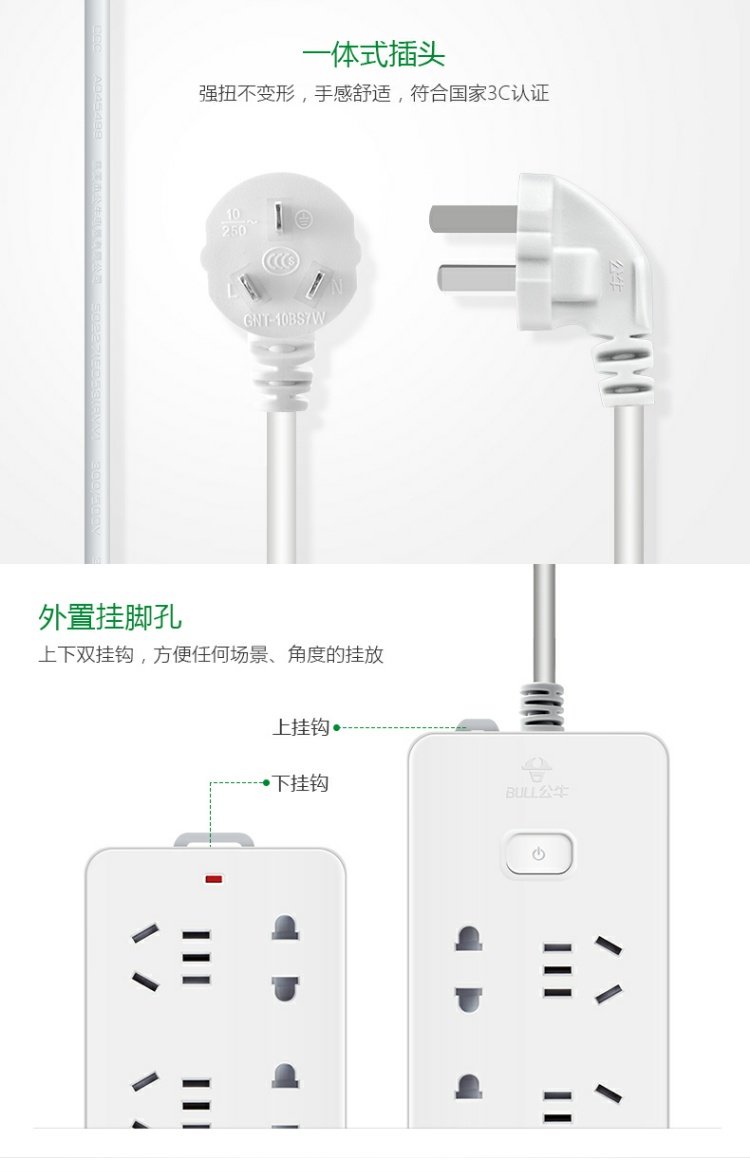 商品名称:公牛 插座插排插线板插板带线4/6/8/10插位家用多孔转换器3/5/10米 GN-403
