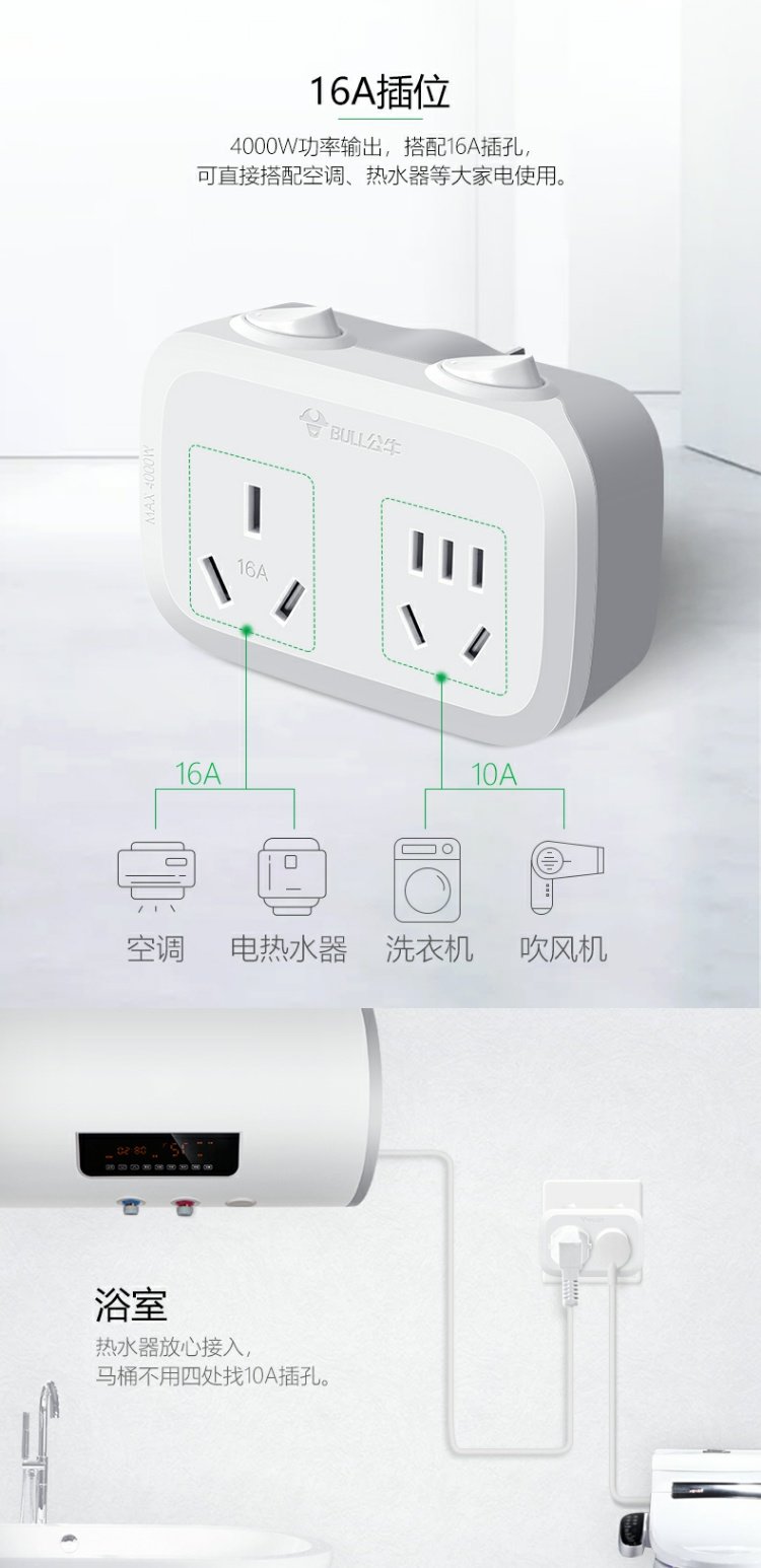 商品名称:公牛 转换插头多功能一转多插座转换器插线板不带线插排大功率16A GN-B5030