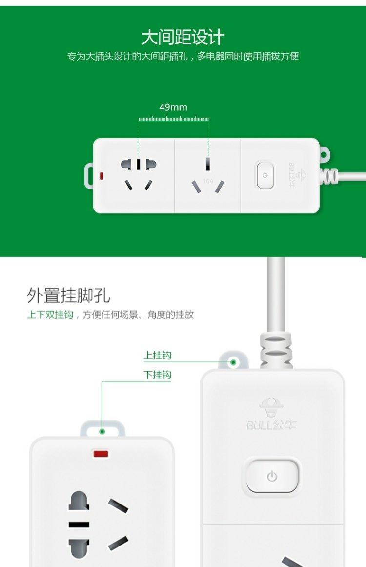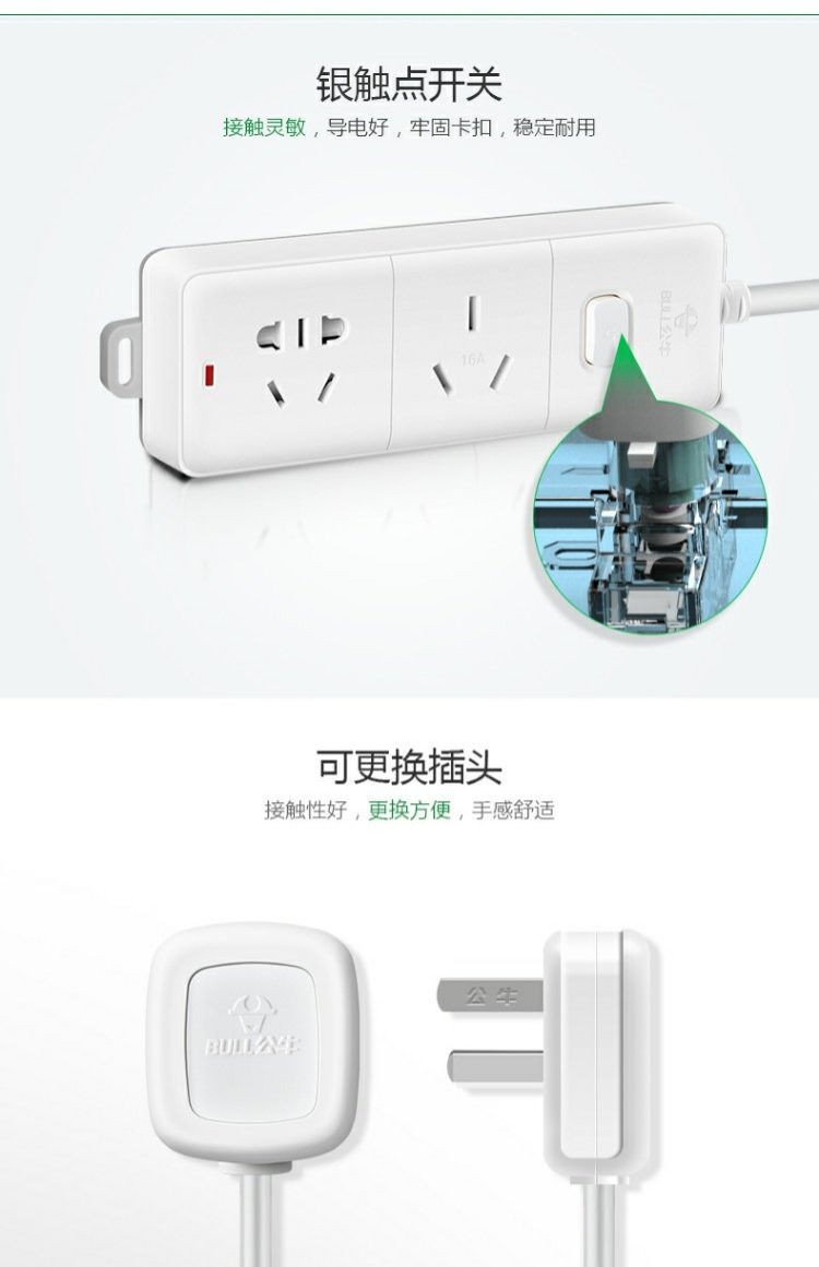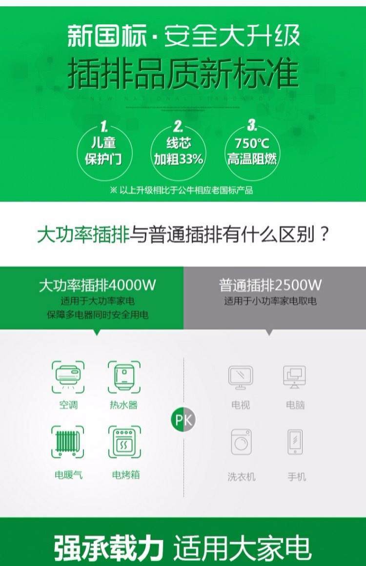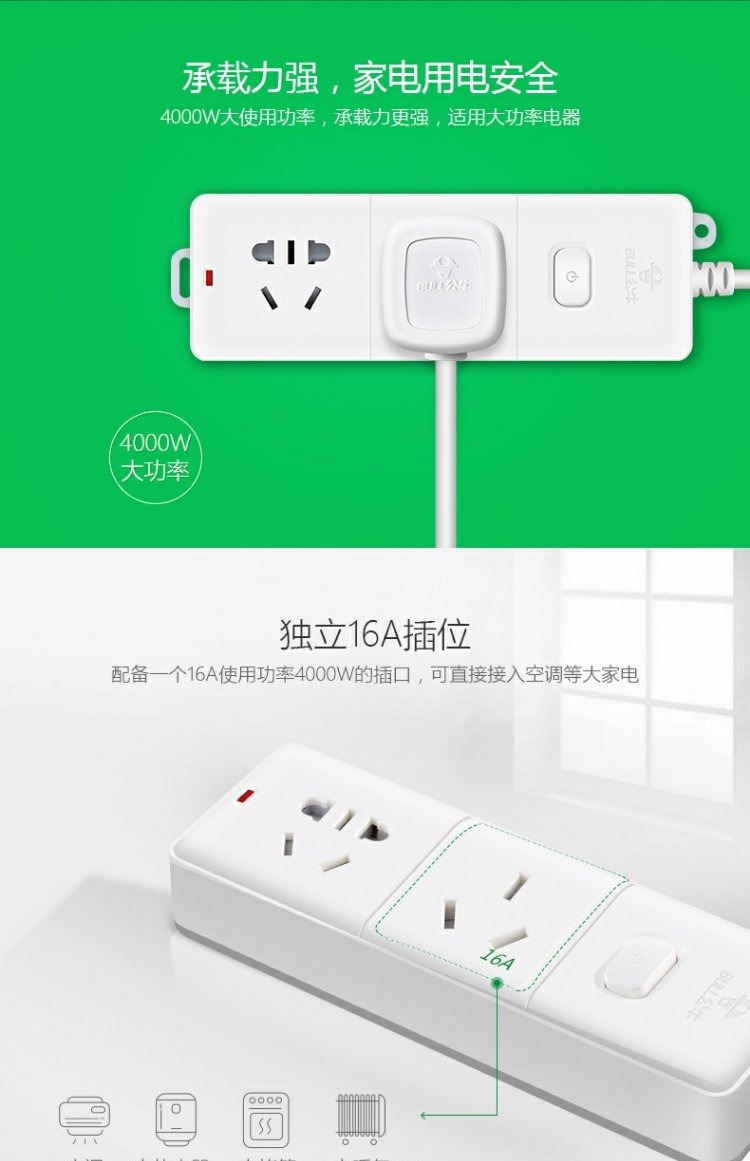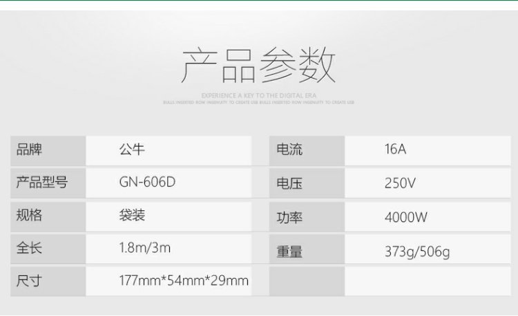 商品名称:公牛 插座接线板插排插线板插板带线4000W空调大功率1.8米/3米 GN-606D