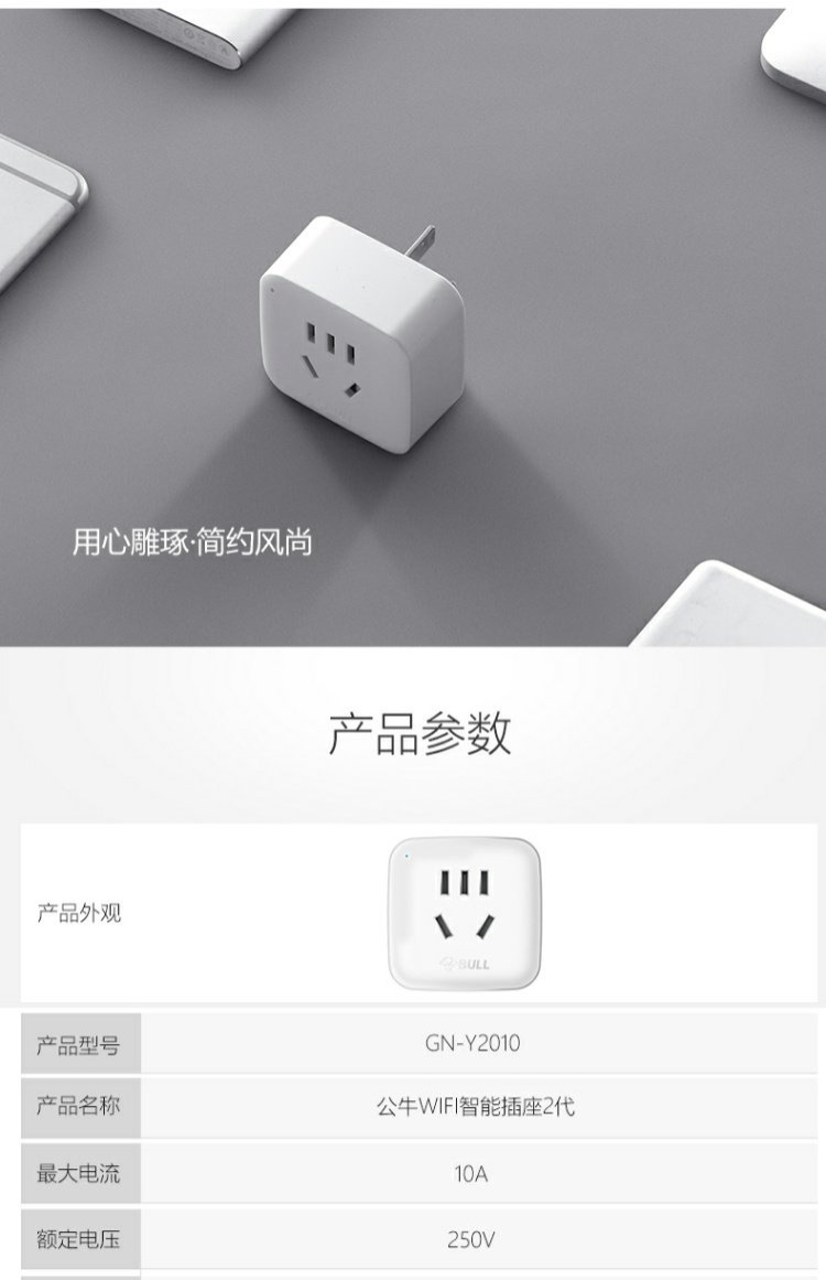 商品名称:公牛 远程WiFi插座10A智能无线手机操控携手阿里小智