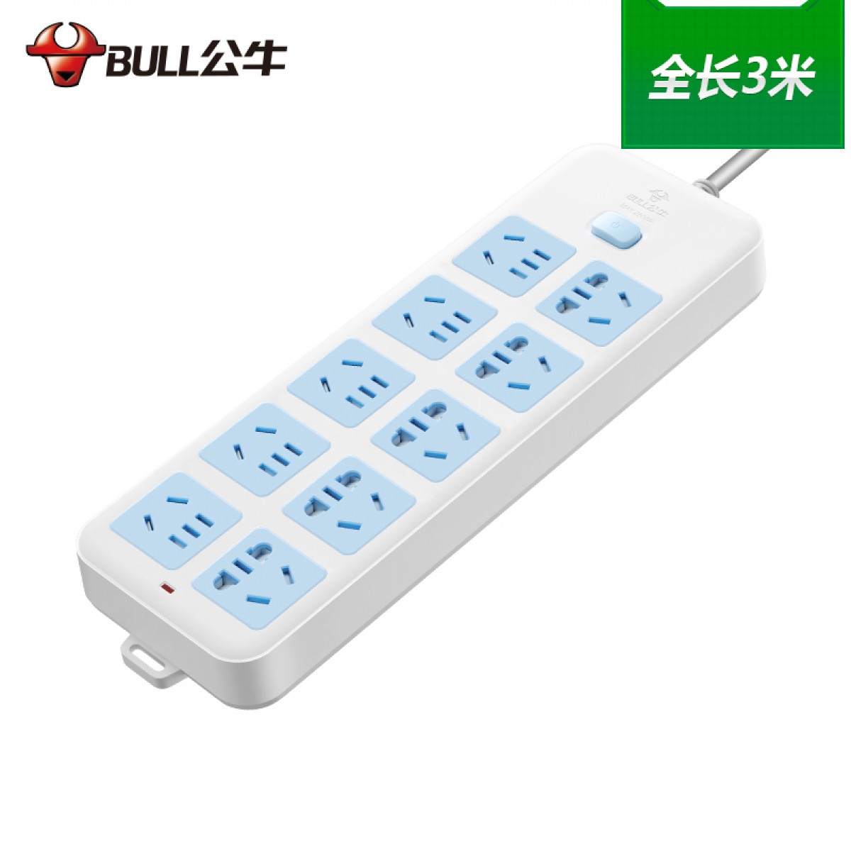 公牛 插座接线板插排插线板拖线板过载保六孔十孔位3米 GN-107