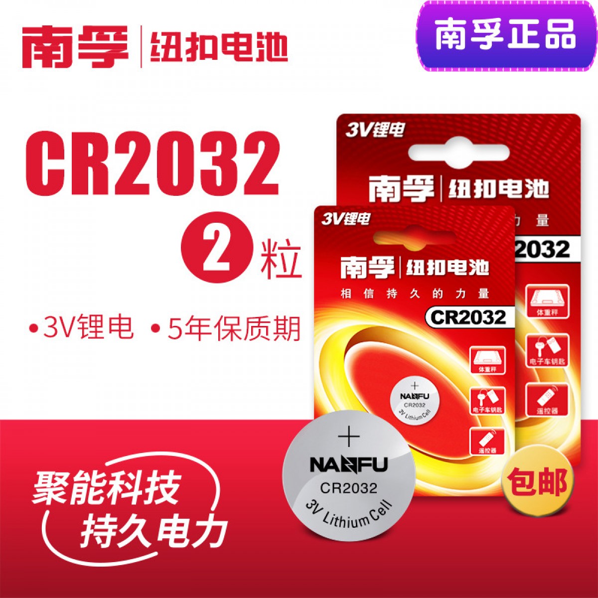 商品名称:南孚 纽扣电池锂电池3V 2粒 CR2032