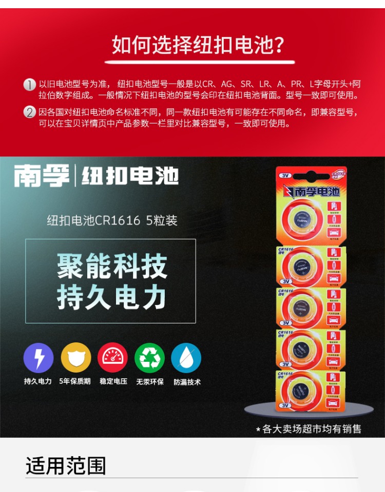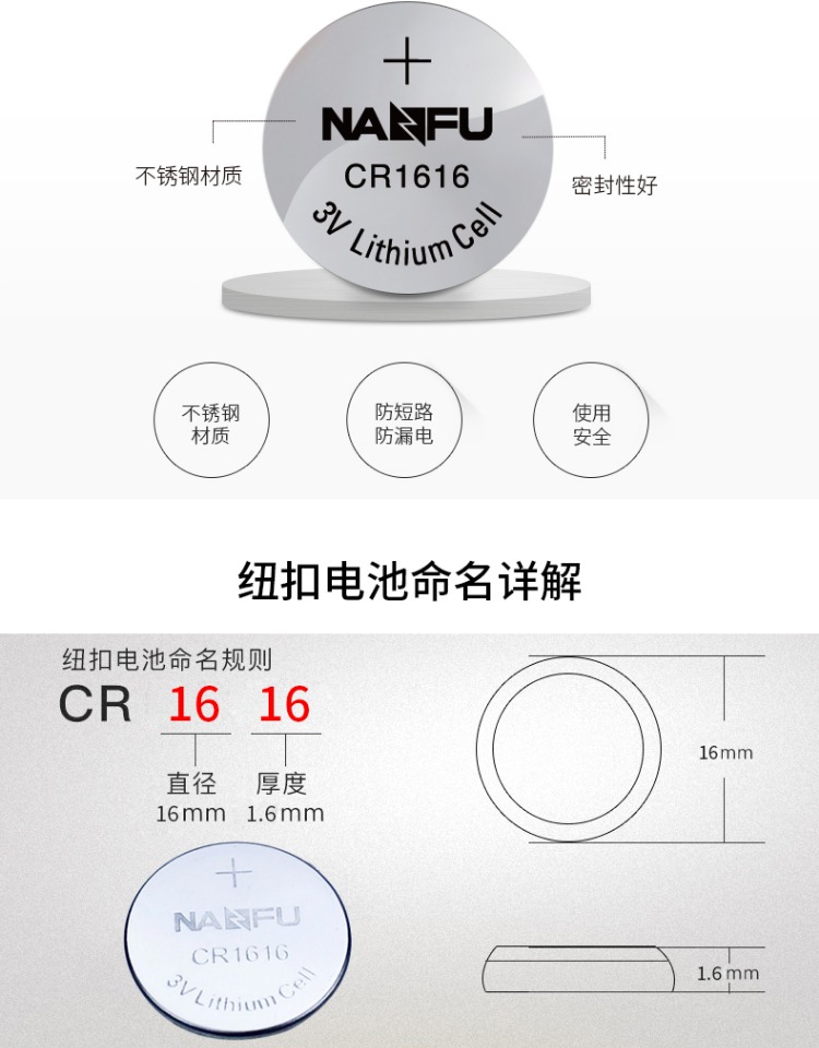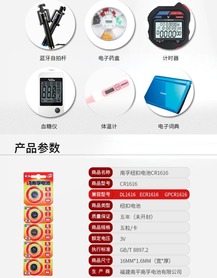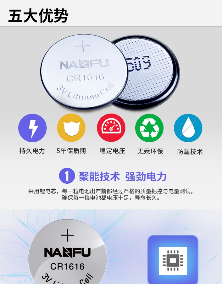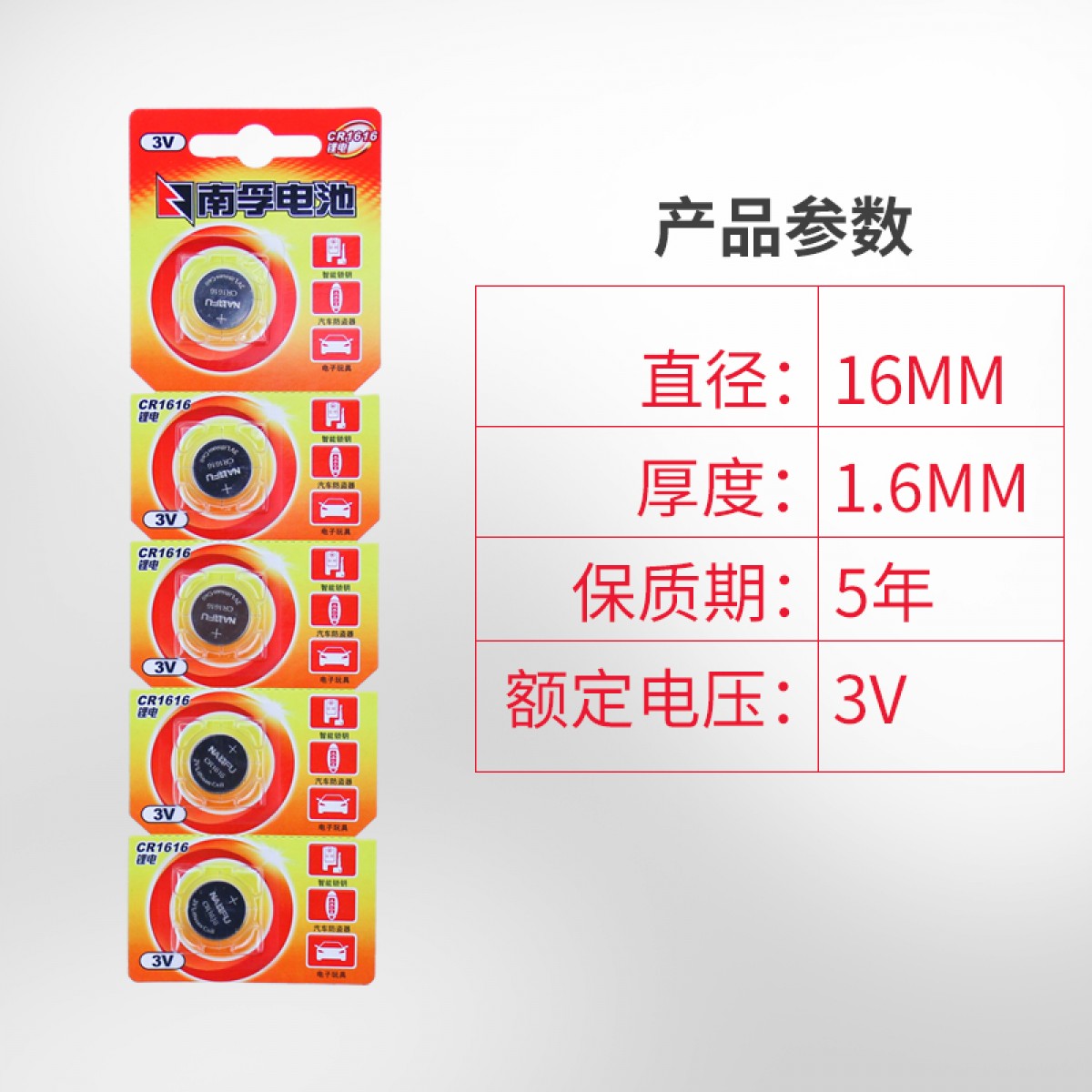 商品名称:南孚 扣式锂电池5粒纽扣电池 CR1616