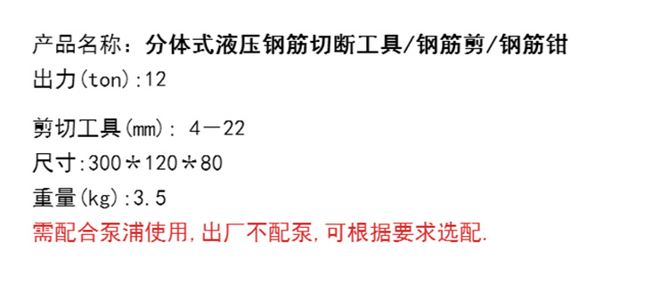 商品名称:春和 分体式液压钢筋剪 手动液压剪 钢筋切断器 电动钢筋剪 RC-22