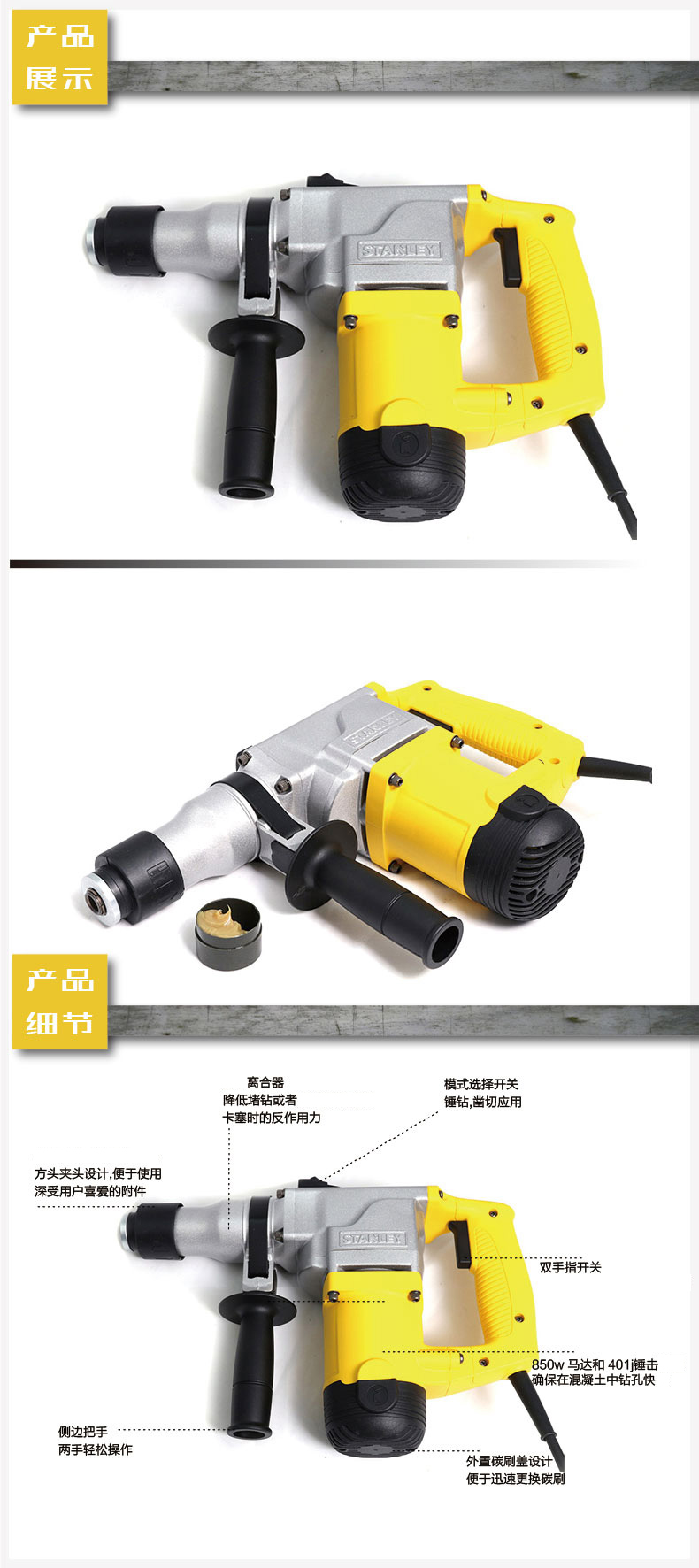 商品名称:STANLEY/史丹利电锤电镐两用多功能大功率电钻电动工具 STHR271K/STHR272K