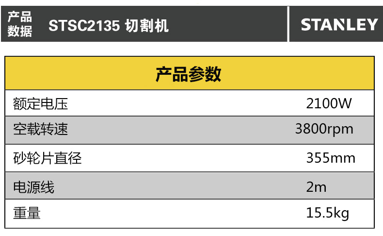 商品名称:STANLEY/史丹利钢材机切割机355毫米台式木工工具 STSC2135