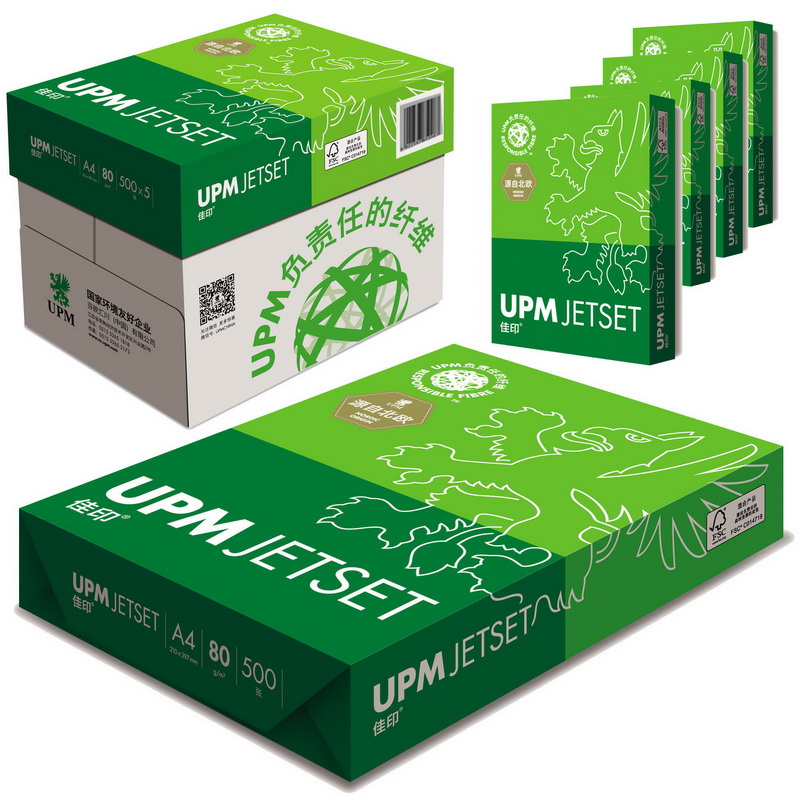 商品名称:UPM佳印 80g A4打印纸 复印纸 FSC认证 加厚款 500张/包 5包/箱(2500张)