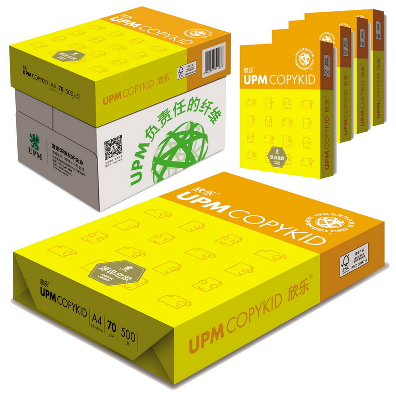 商品名称:UPM黄欣乐 80g A4打印纸 全木浆复印纸 加厚款 500张/包 5包/箱(2500张)