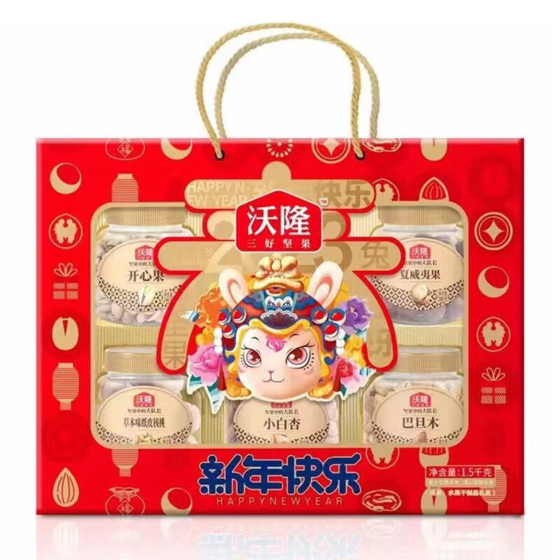沃隆 新年快乐1.5KG坚果礼盒坚果炒货送礼团购干果炒货开心果夏威夷果纸皮核桃榛子仁 单位:盒