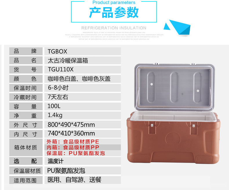 商品名称:TGBOX/太古冷链 110L超大保温箱车载外卖冷藏箱 TGU110