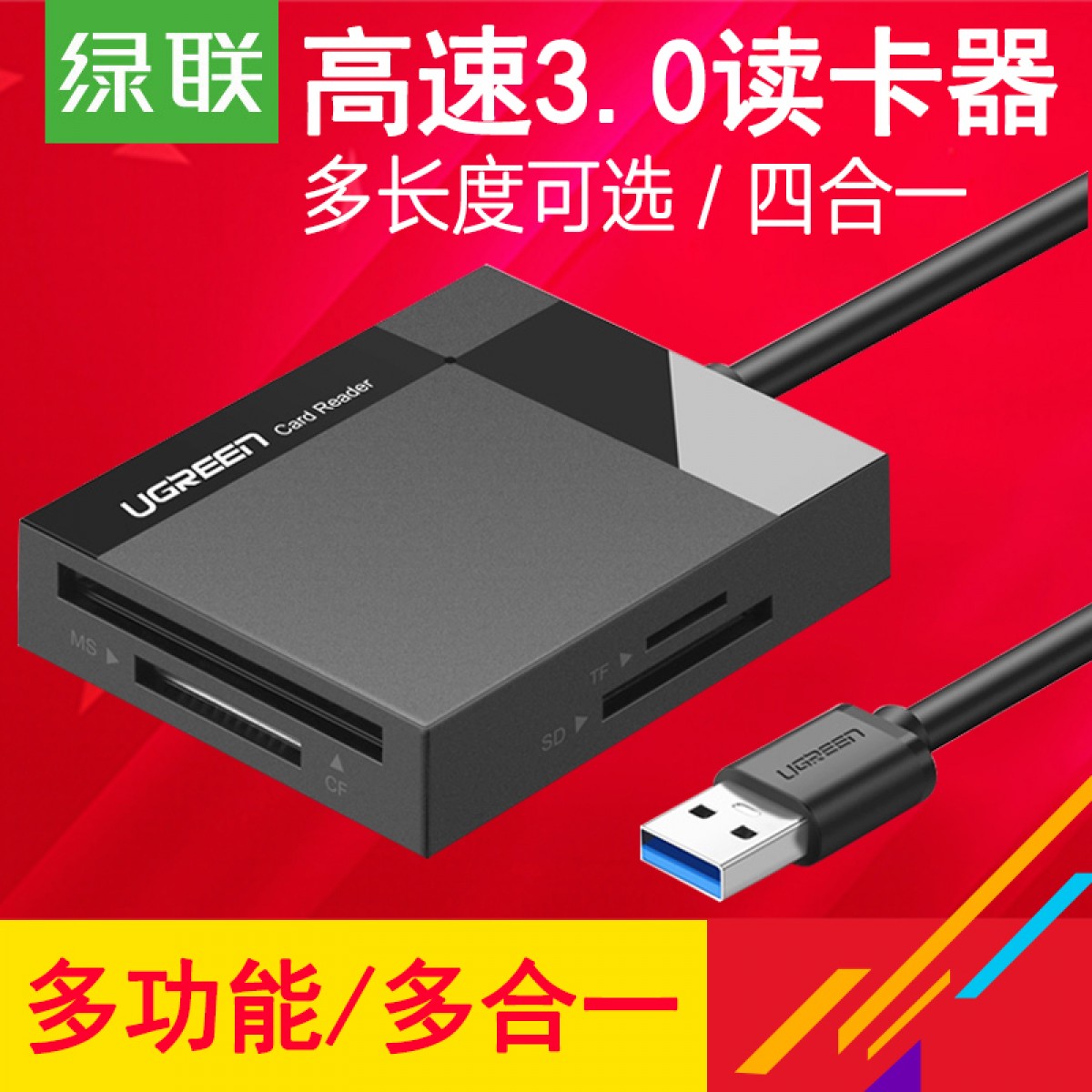 绿联 USB3.0高速读卡器多合一多功能tf/sd/cf/ms相机手机内存卡otg笔记本台式电脑通用数据线传输文件连接 GR125