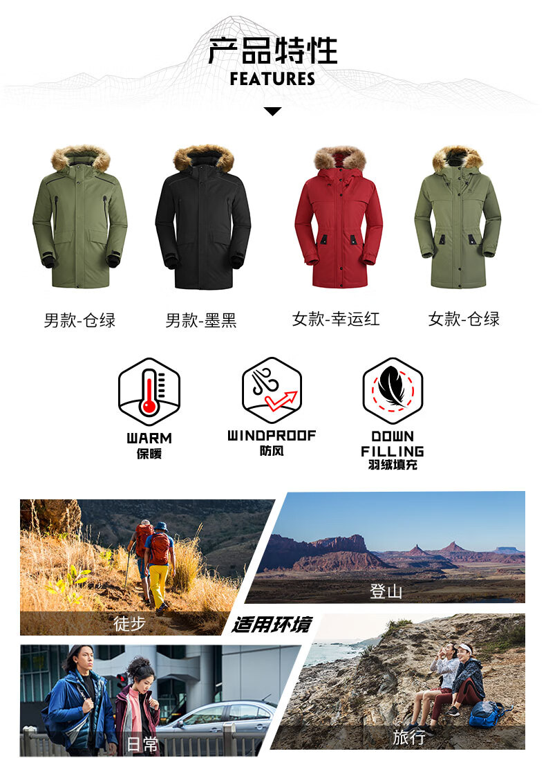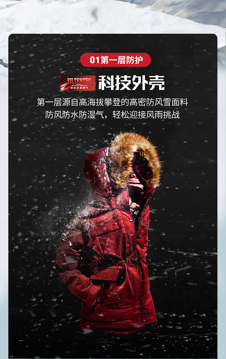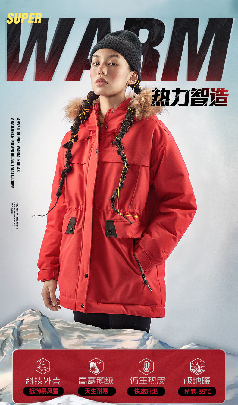 商品名称:凯乐石(KAILAS)加厚羽绒服 女款工装派克风户外防寒保暖中长款鹅绒连帽外套 KG2043601 幸运红(S-XL)单位:件