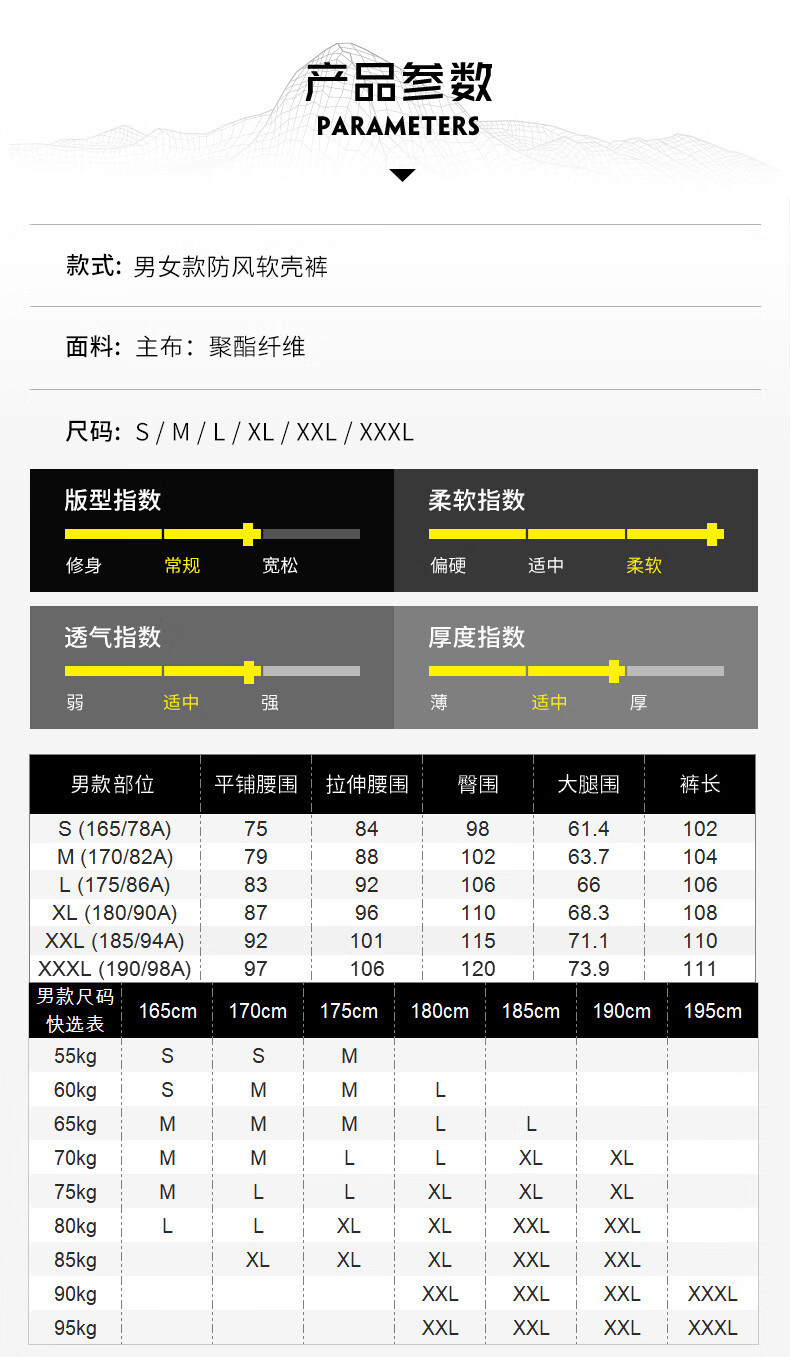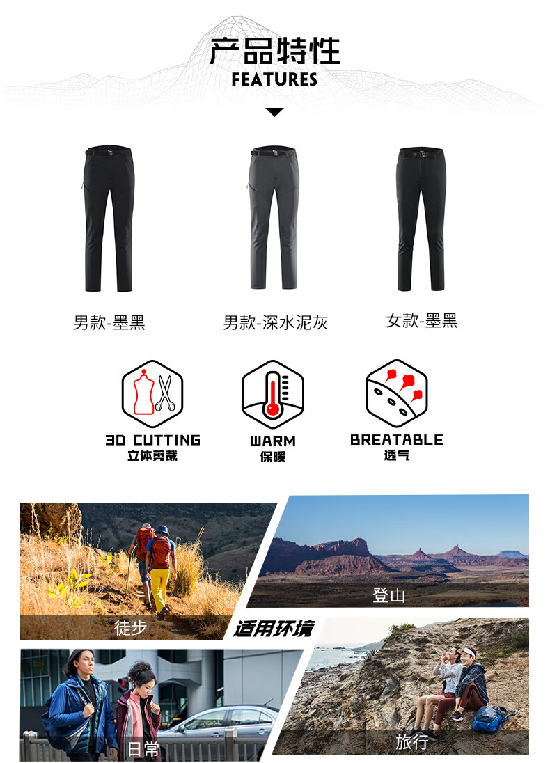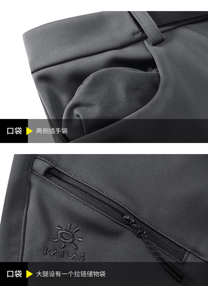 商品名称:凯乐石(KAILAS)防风软壳裤 秋冬户外运动加绒加厚软壳裤防寒保暖冲锋裤 KG2049701 墨黑(男款)(S-2XL可选)