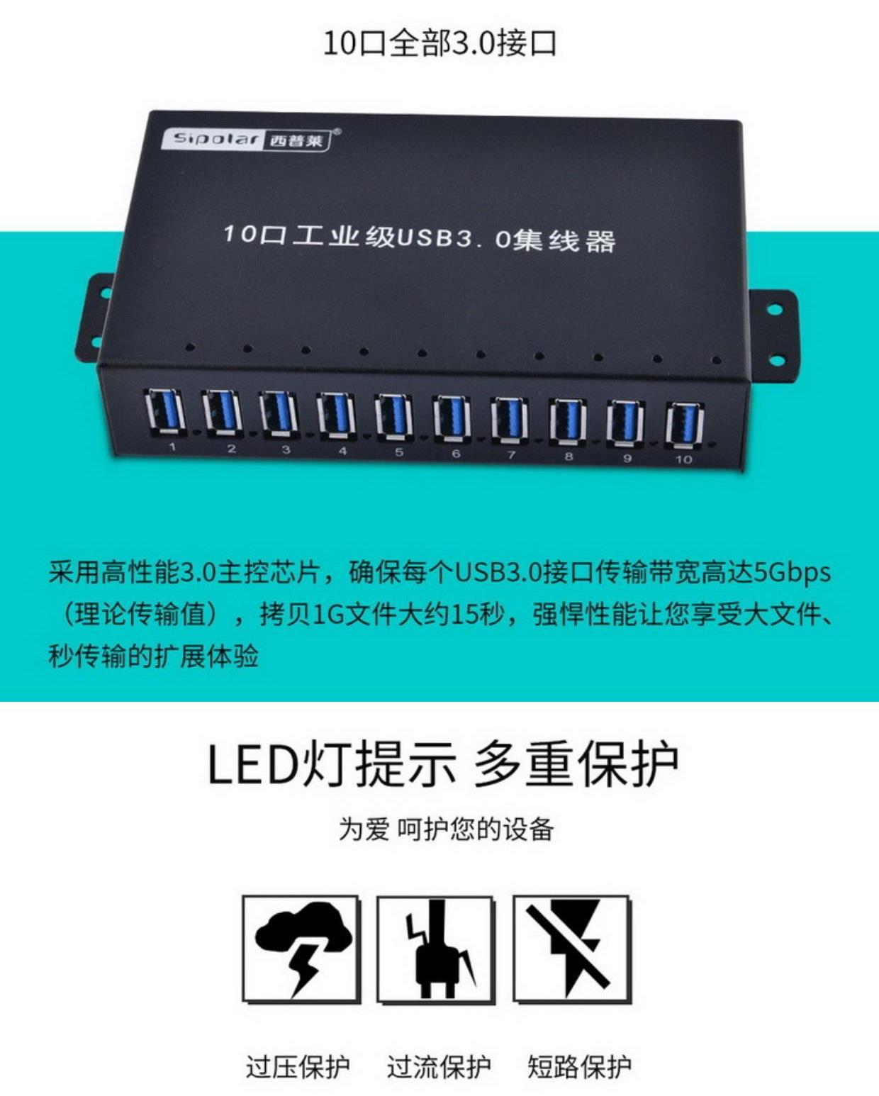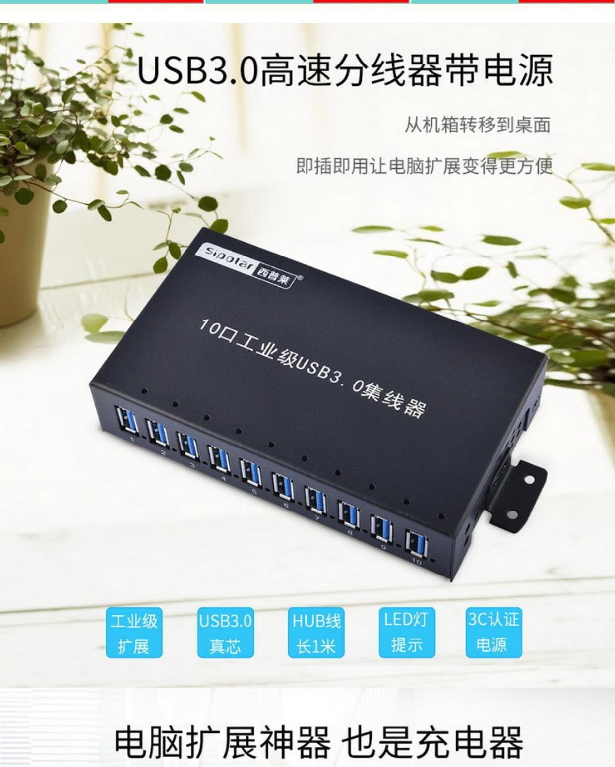 商品名称:西普莱 10口usb3.0集线器高速扩展hub手机充电刷机分线器外接电源