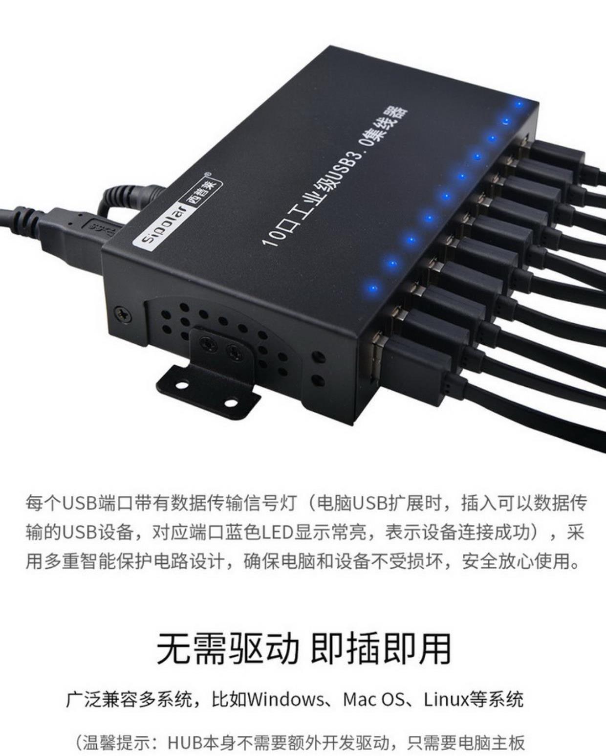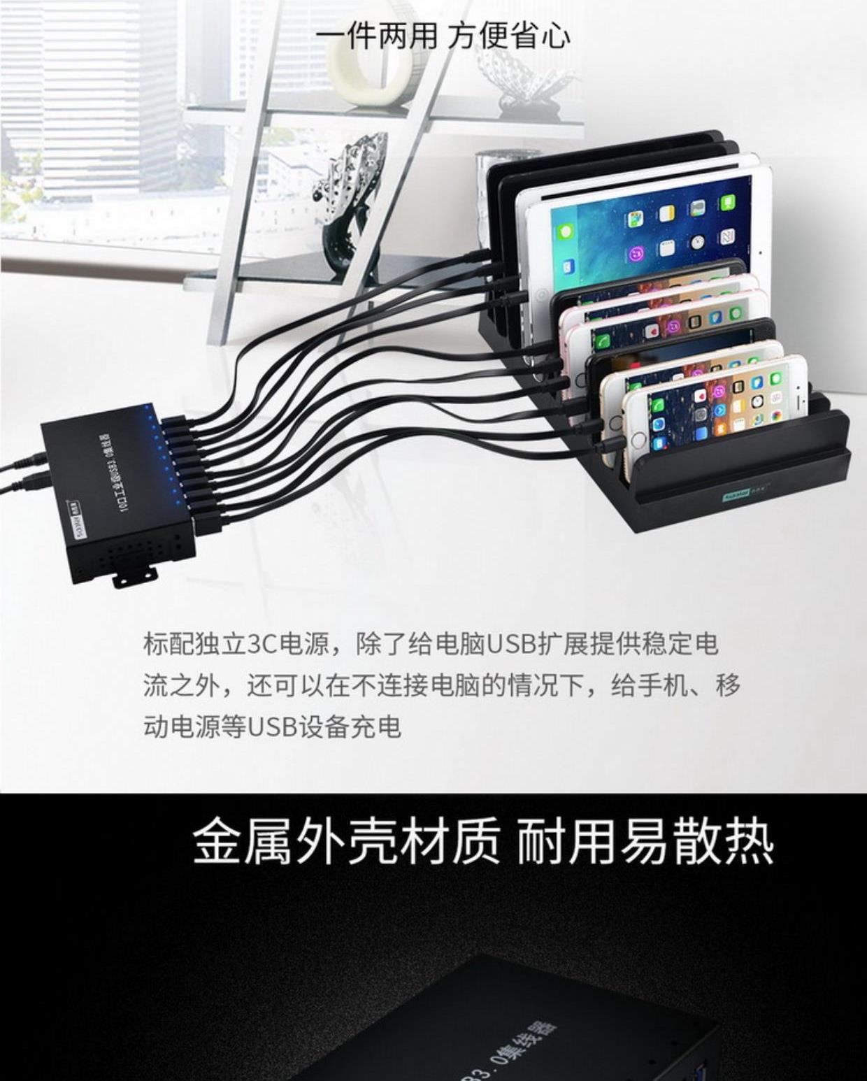 西普莱 10口usb3.0集线器高速扩展hub手机充电刷机分线器外接电源