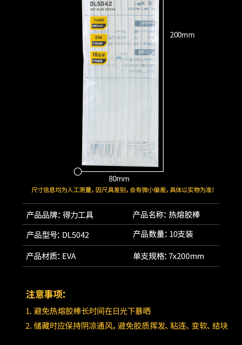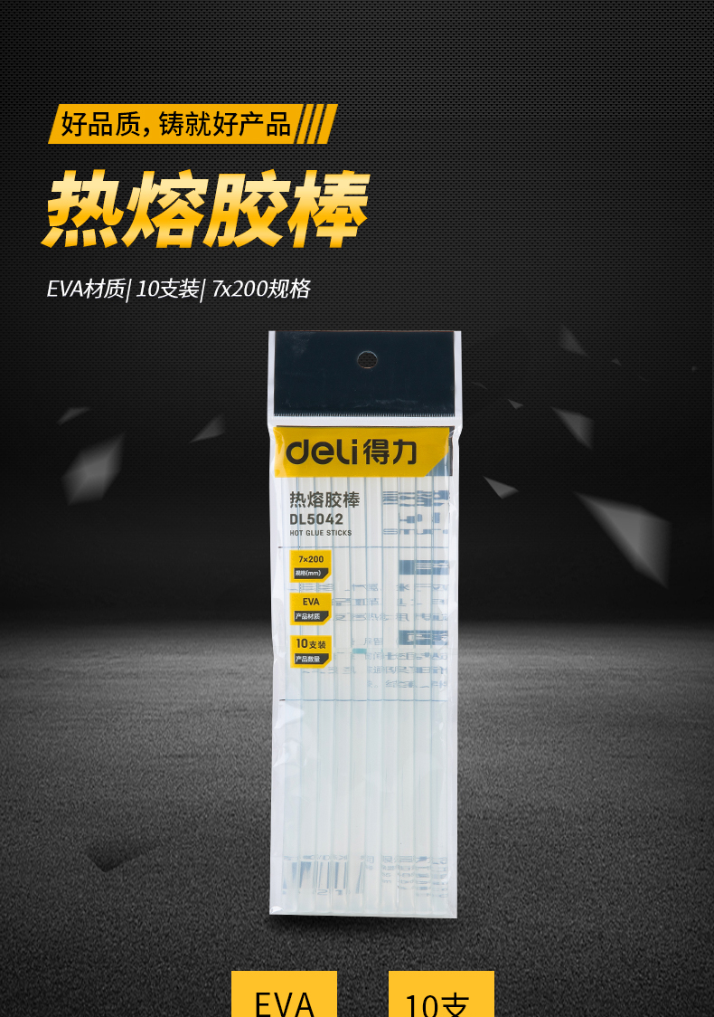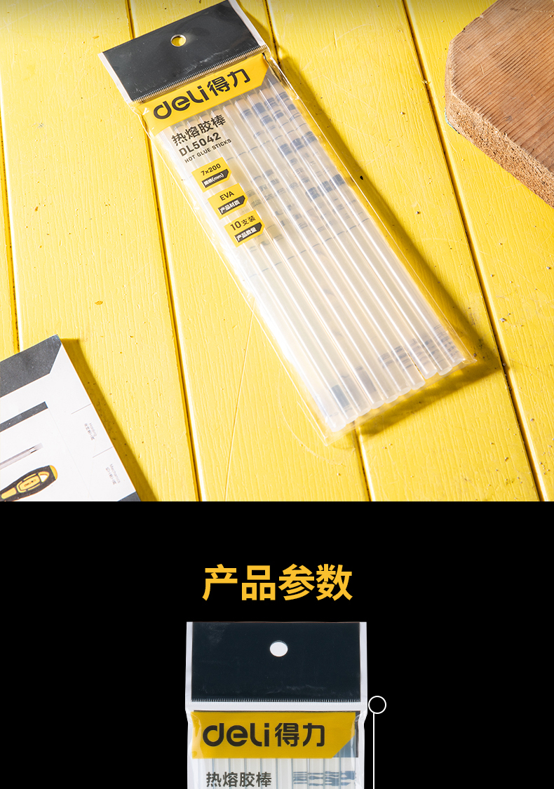 商品名称:得力 热熔胶 10支装 DL5042 单位:包 10包起订