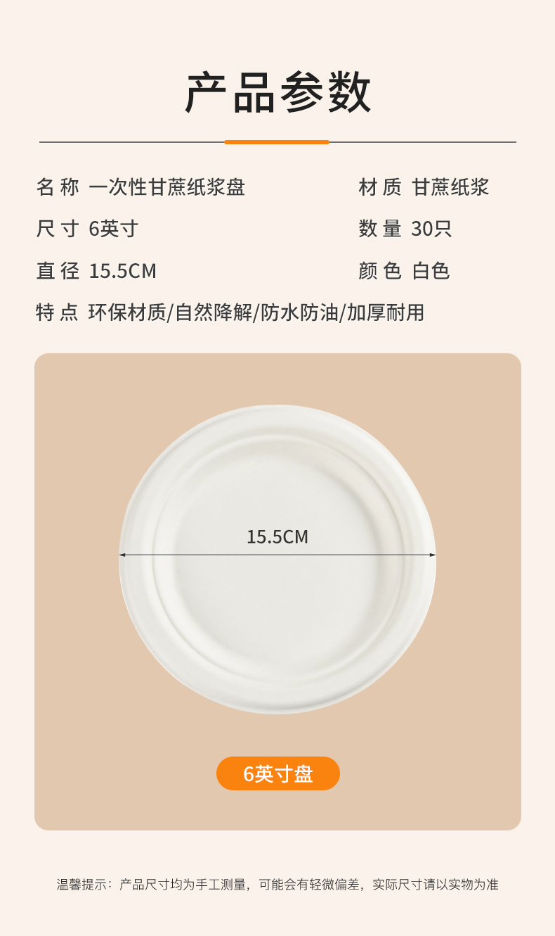 商品名称:特美居6英寸一次性盘子蛋糕纸盘加厚可降解餐盘防水防油 30装美式15.5cm 单位:包