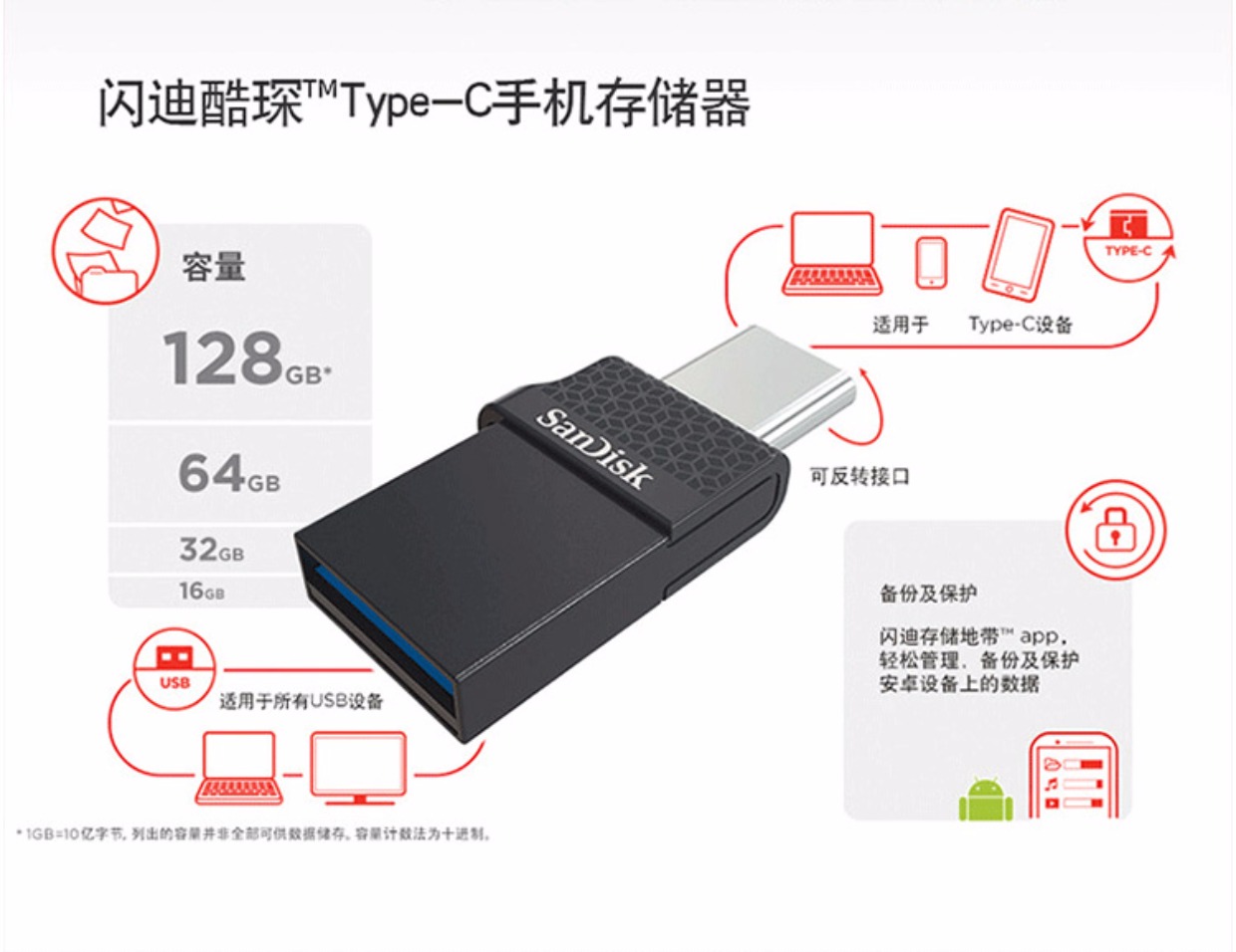 商品名称:闪迪 32G 酷琛Type-C 电脑手机两用U盘USB2.0
