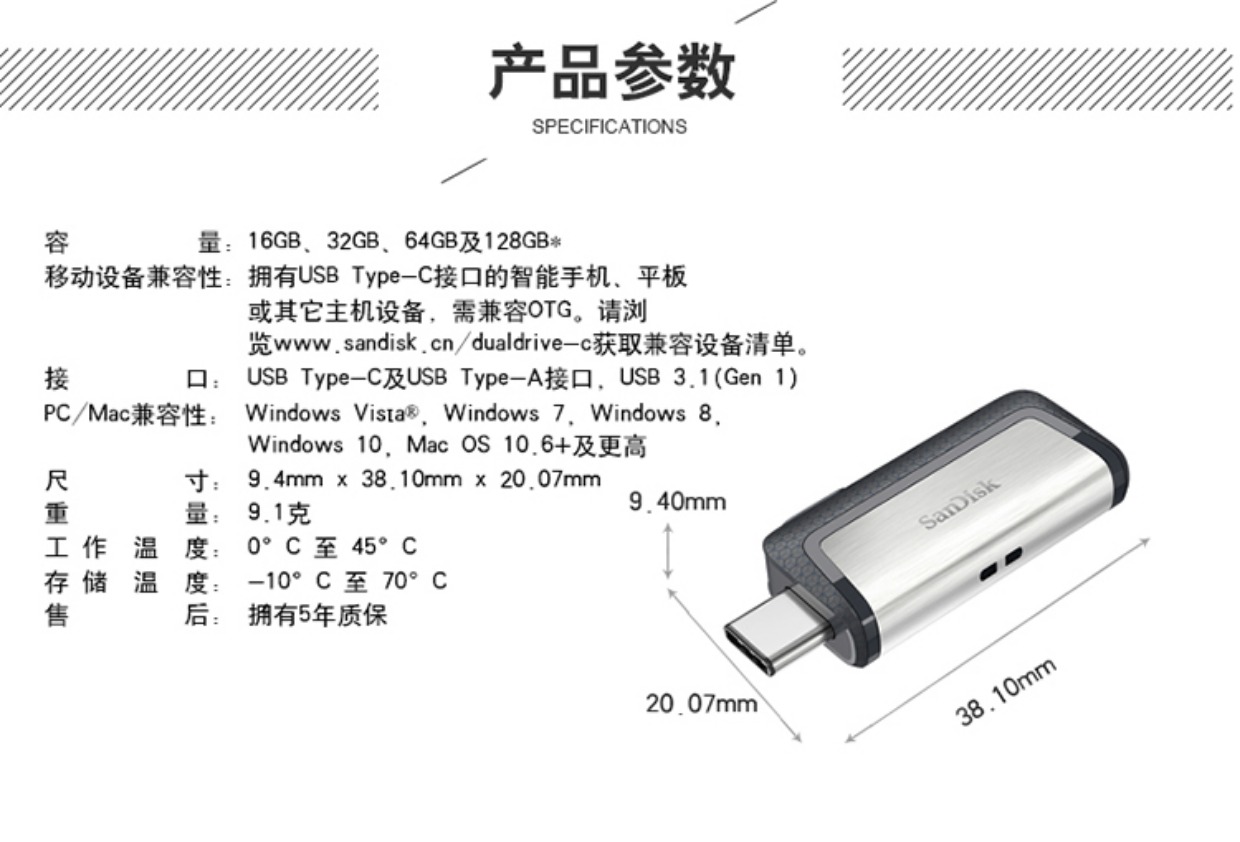 商品名称:闪迪 Type-C双接口32G手机两用U盘USB3.1安卓OTG扩展U盘 SDDDC2