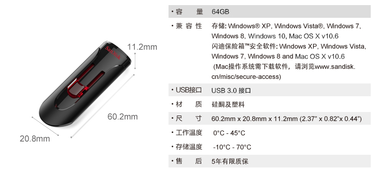 商品名称:闪迪 128G 酷悠USB3.0 U盘 推拉式U盘 CZ600