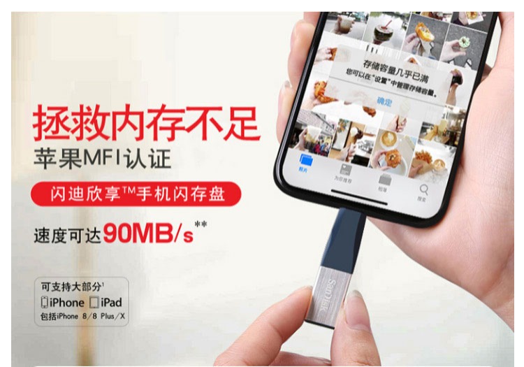 商品名称:闪迪 欣享手机U盘128GMFI认证适用于苹果iPhoneX/8 Plus/7/6S/iPad SDIX40N