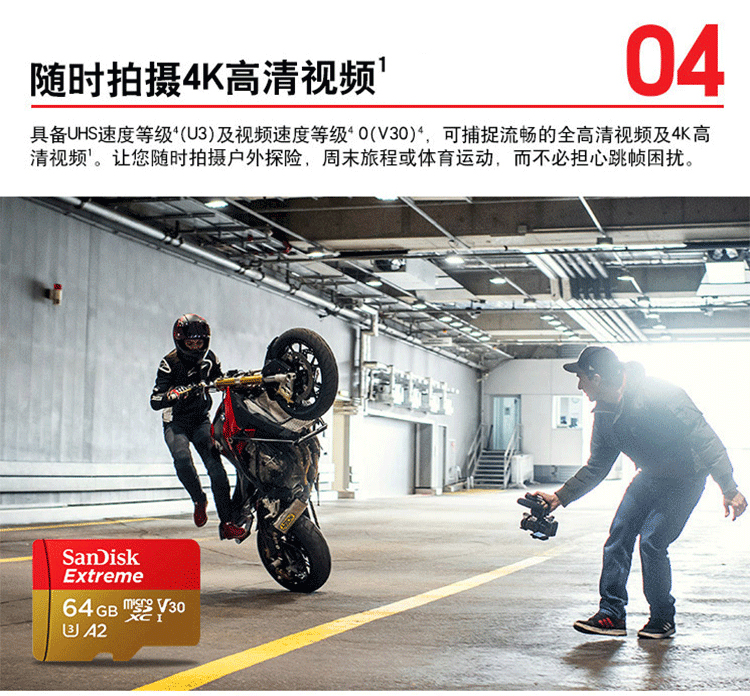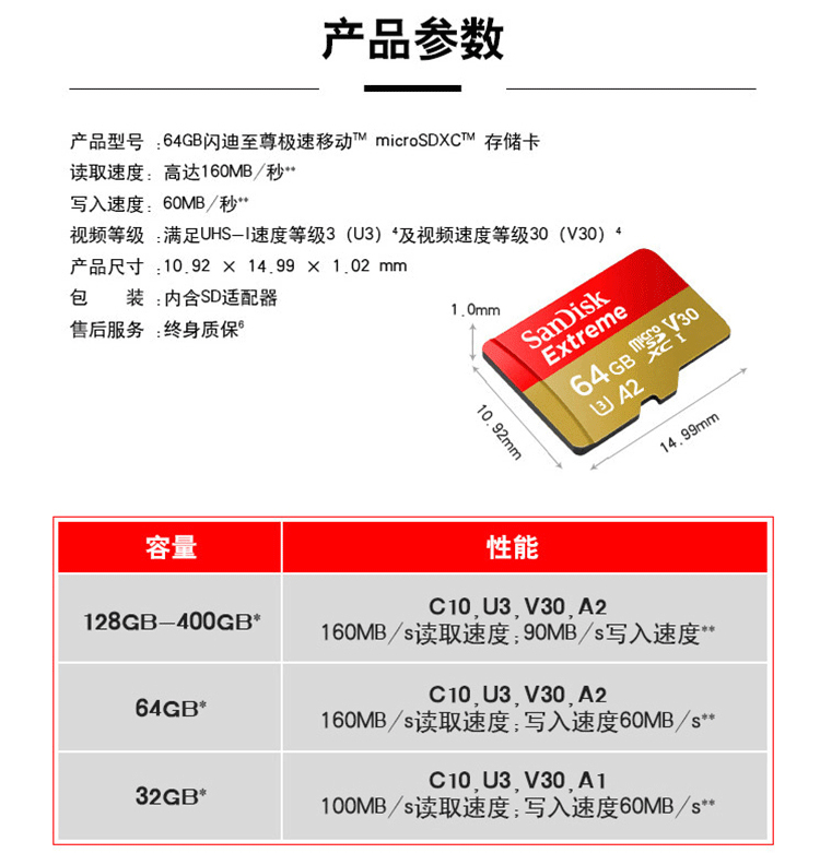 商品名称:闪迪 TF卡读速160M A2 V30 4K U3 Extreme手机内存卡 64G