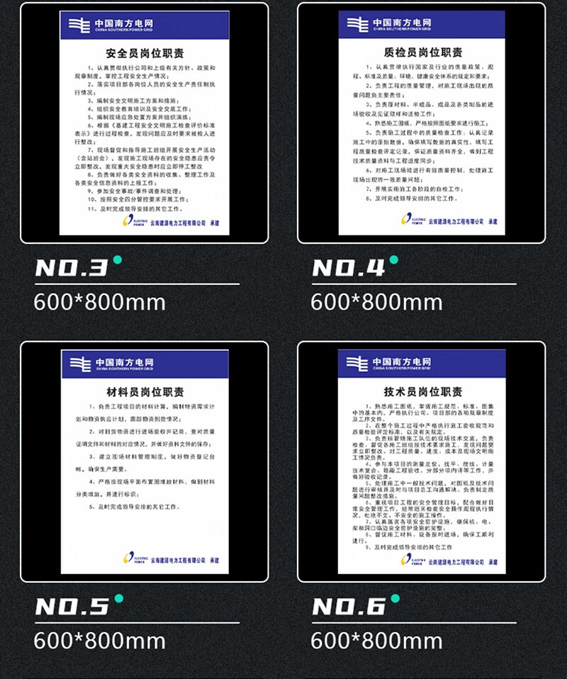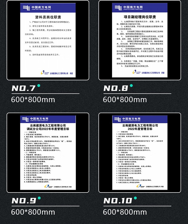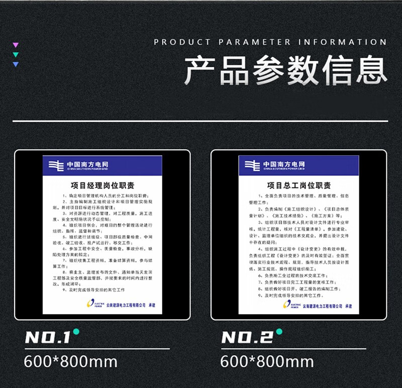 商品名称:晟泰邦 岗位职责、组织机构图、上墙资料标识牌 KT板+包银边 单位:块