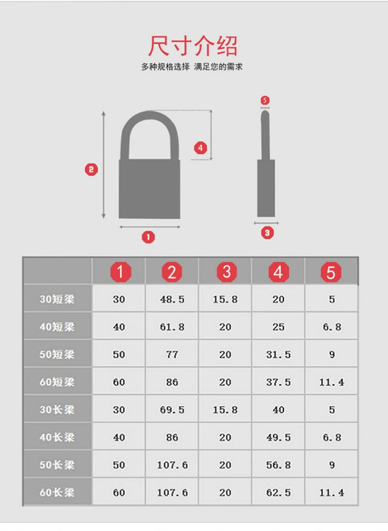 商品名称:晟泰邦 30*50mm 短梁挂锁 通开锁 配20条钥匙 计价单位:把